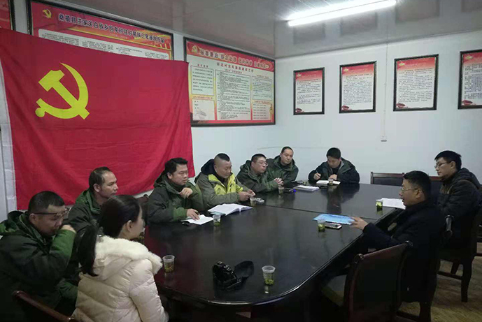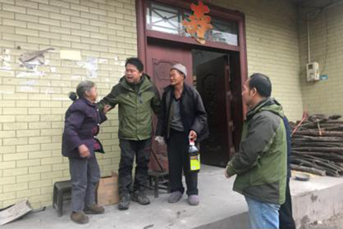 保卫处全体党员迎着凌冽的寒风,在接近0度的气温中跟着党旗阔步前行,6.4公里的路程,没有一个喊累,没有一个掉队。大家热情似火,一路上讲着长征的故事,唱着长征歌曲,穿过乡间小路、穿过田野与村庄,一边追寻革命先辈的足迹全体成员辗转来到保卫处定点帮扶对象李义家,送上米、面、油、点心等慰问品。在回龙村村支书周红霞老屋里,党员们围着火坑,畅谈着这两天来的所见、所闻、所思、所感、所悟。