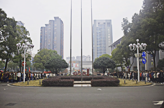 清晨的校园格外静谧,升旗仪式在庄严肃穆的氛围下进行。同学们整齐列队于国旗杆下,以良好的精神风貌展现了我院莘莘学子之风采。院国旗班的旗手们在同学们的注目礼中有条不紊的护旗、展旗,在激昂振奋的国歌声中,鲜艳的五星红旗冉冉升起。