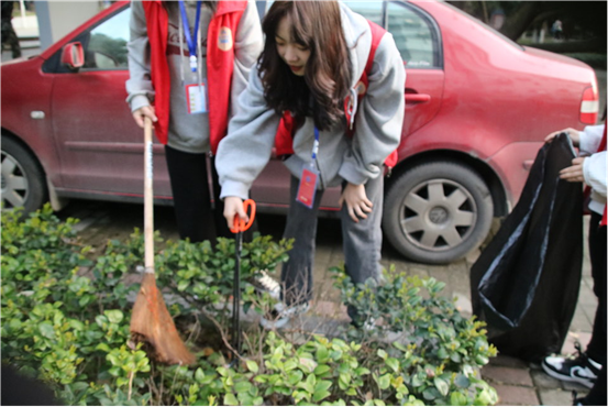 志愿者们分为6个小组,各自拿起扫帚、铲子、撮箕、垃圾袋等劳动工具,对校园主干道、绿化带、田径场、学生公寓楼前后等场所,特别是对校园卫生死角绿化带杂草进行了认真清理打扫。他们不怕脏不怕累,分工明确,积极完成各自的任务。经过大家的努力,校园卫生环境得到了进一步的改善,整个面貌焕然一新,大红色的青年志愿者背心,在葱郁的校园里非常引人注目,志愿者的身影俨然与校园环境融为一体,构成一幅美好的图画。