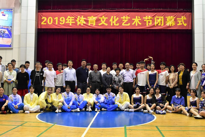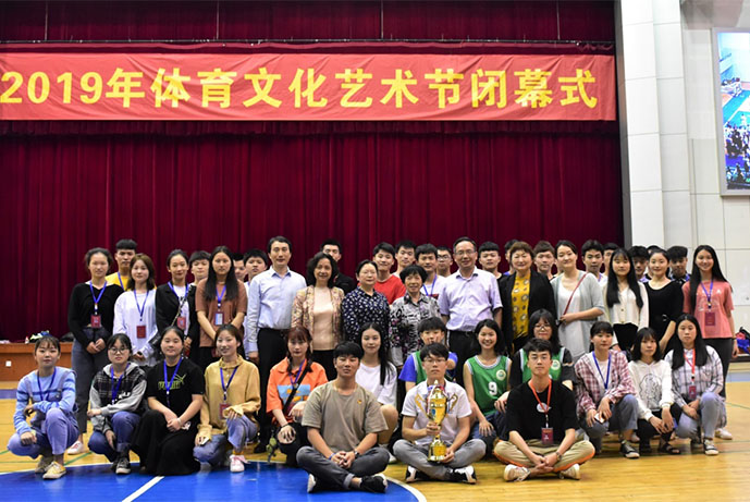 与会领导和同学们一起观看了男子篮球冠亚军比赛和体育文化艺术成果展演。校团委副书记刘腾代表体育文化节组委会宣布2019校园体育文化艺术节团体总分及名次。与会领导分别为团体总分前五名颁发了奖杯。