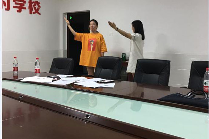 5月22日,预赛在邵阳电大新校区举行。赛后,由邵阳市委组织部及学校领导、指导教师组成的评委组,对预赛进行了总结、点评,并对学员预赛中存在的问题提出了具体的改进意见。鉴于学员都有较大的提升空间,学校决定,聘请邵阳市演讲与口才学会副会长、邵阳广电系统资深主持人陶斯霞老师对学员进行培训。老师从发音吐词、语速及节奏控制、肢体语言运用等方面和细节对学员进行了指导。