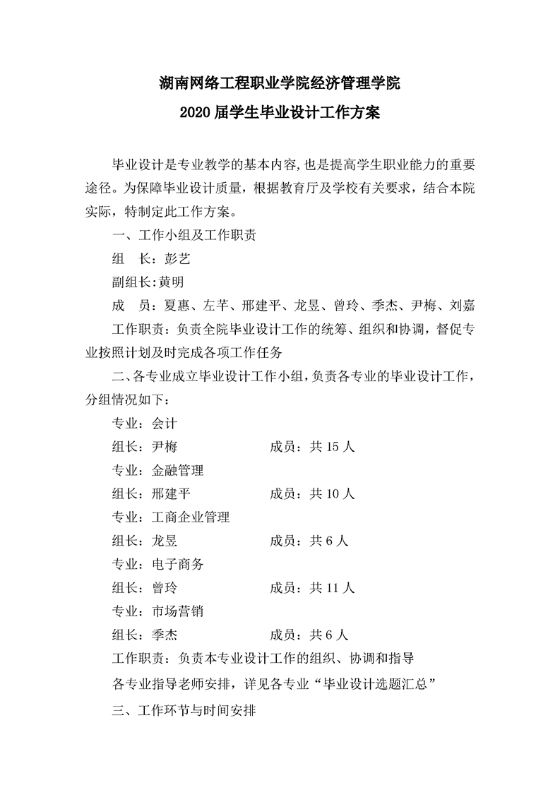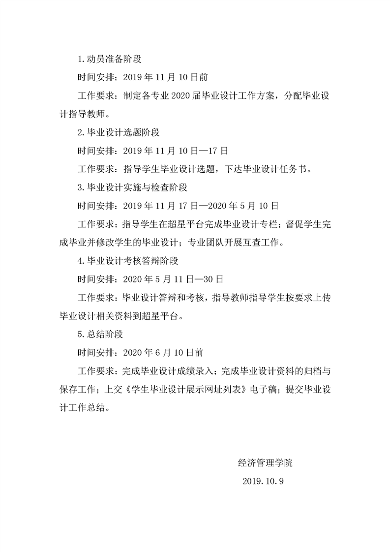 经济管理学院2020届学生毕业设计工作方案