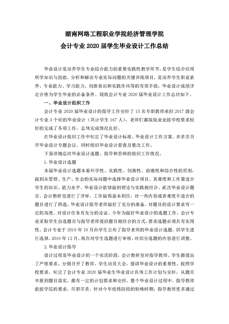 经济管理学院2020届毕业设计总结