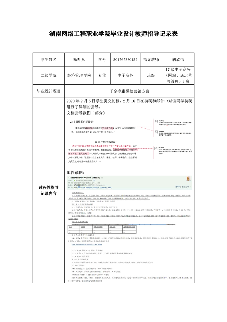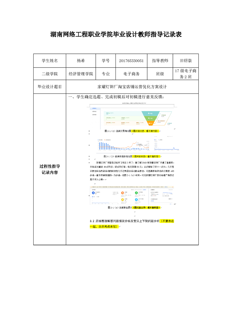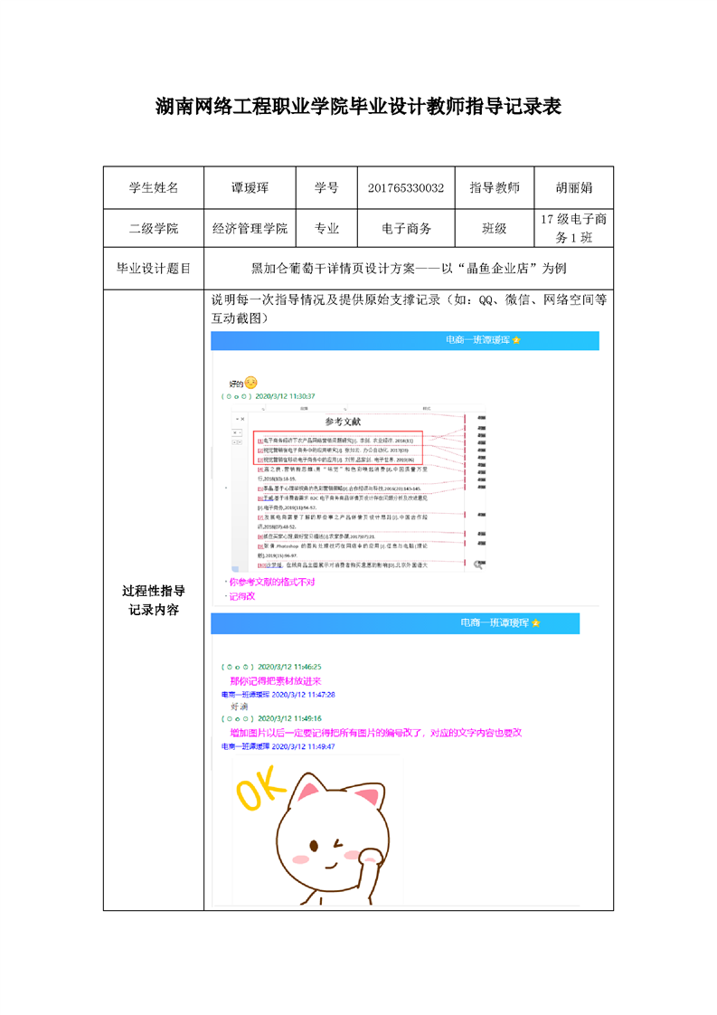 经济管理学院电子商务专业毕业设计教师指导记录表