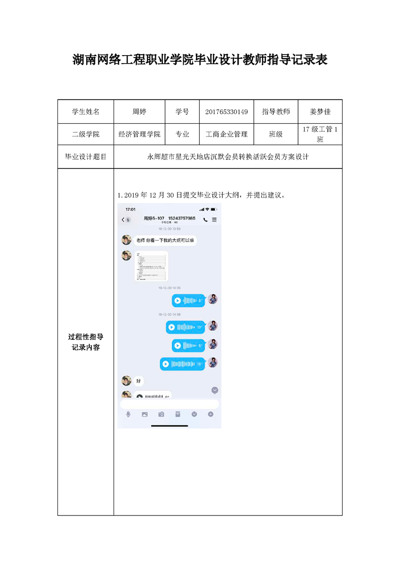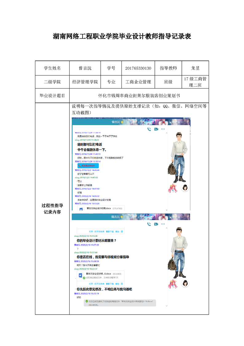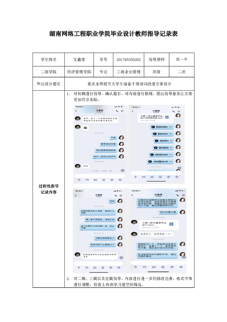 经济管理学院工商企业管理专业毕业设计教师指导记录表