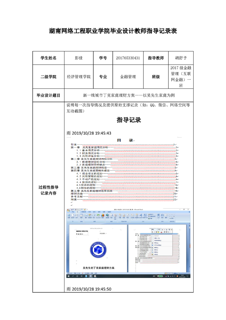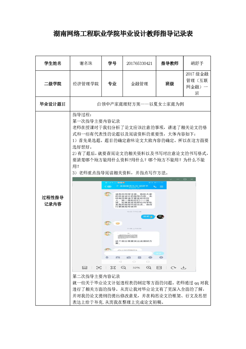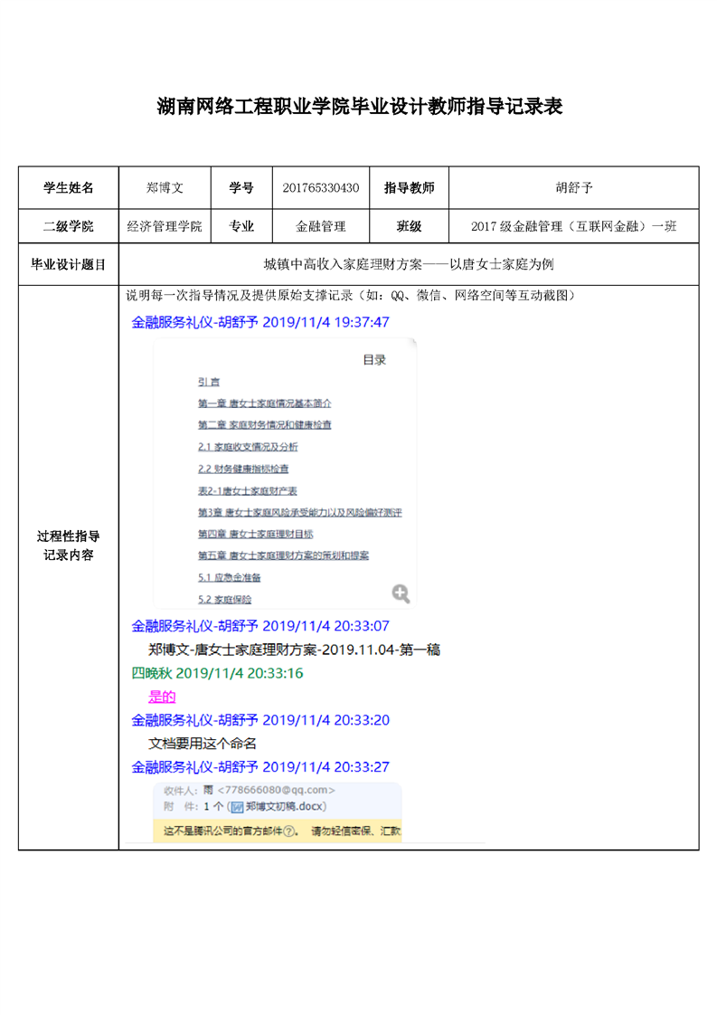 经济管理学院金融管理专业毕业设计教师指导记录表