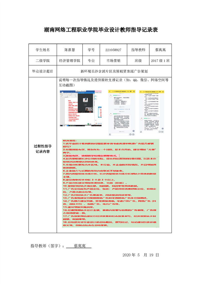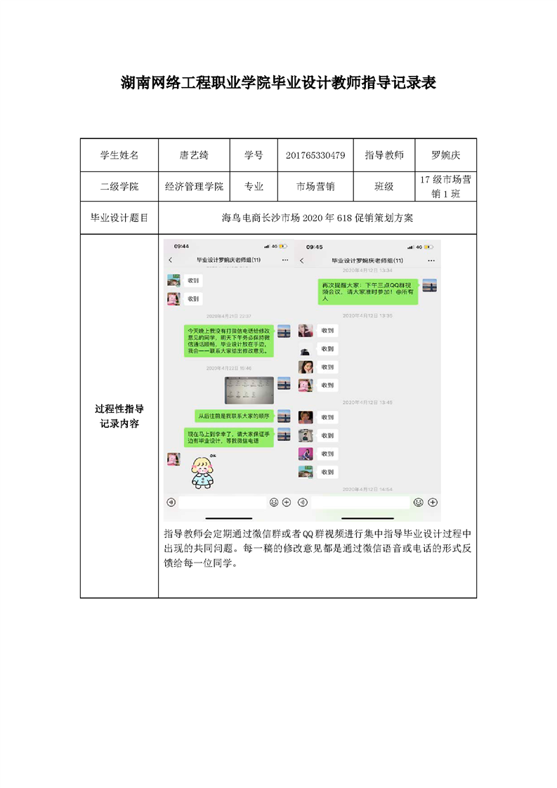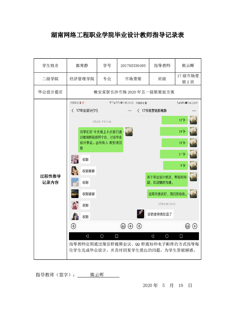经济管理学院市场营销专业毕业设计教师指导记录表