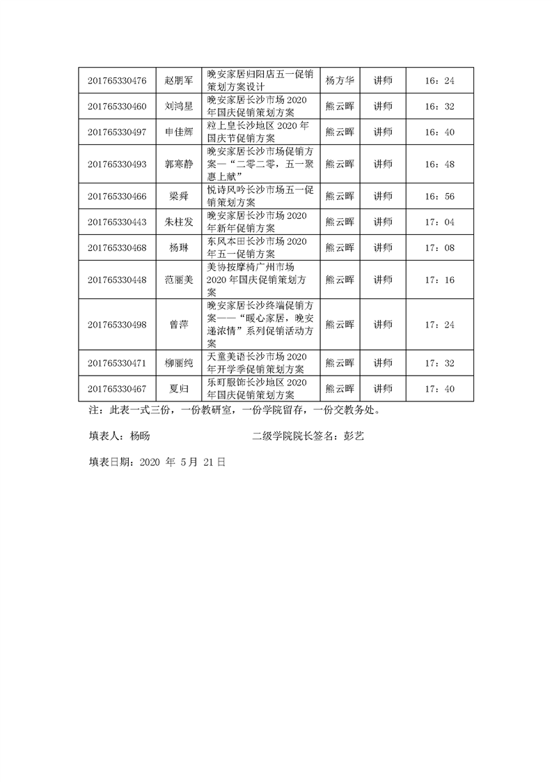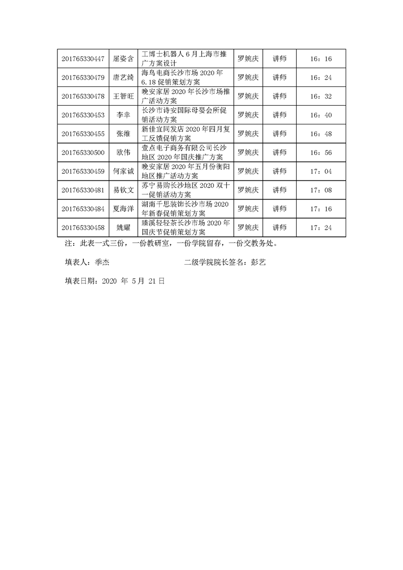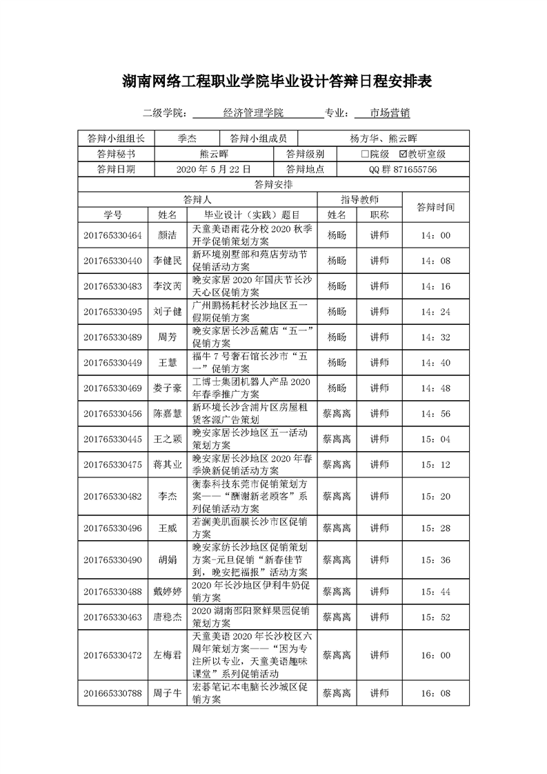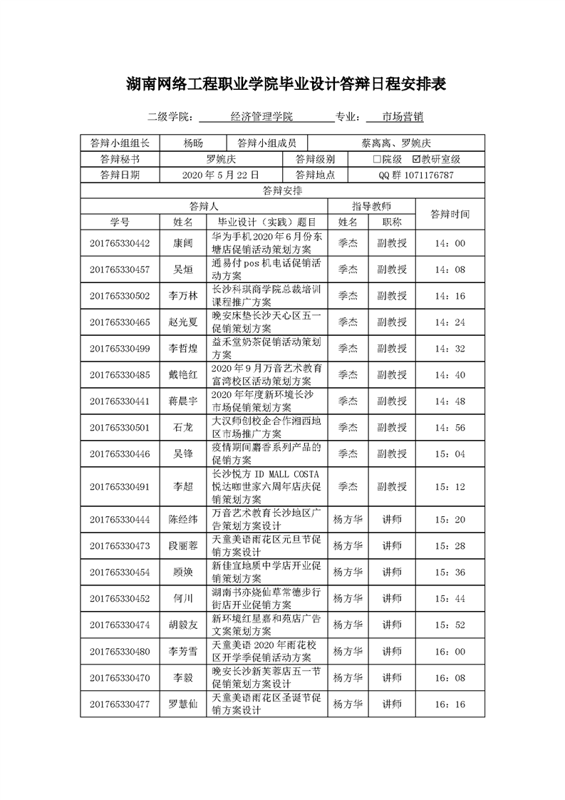 经济管理学院市场营销专业线上答辩安排表