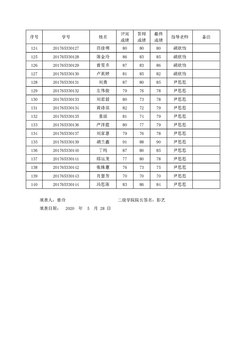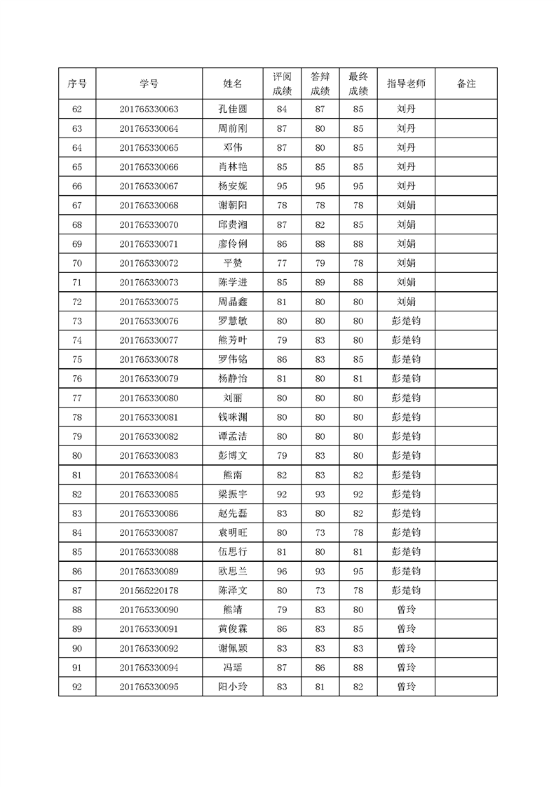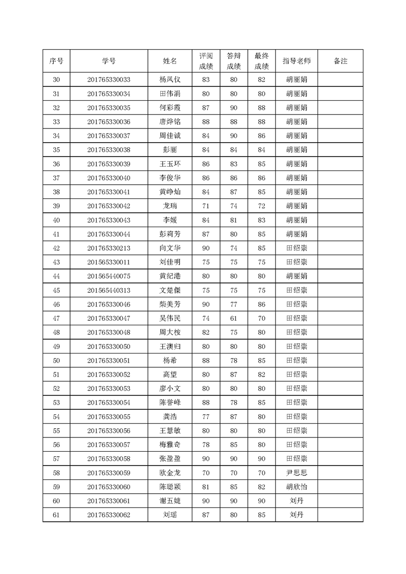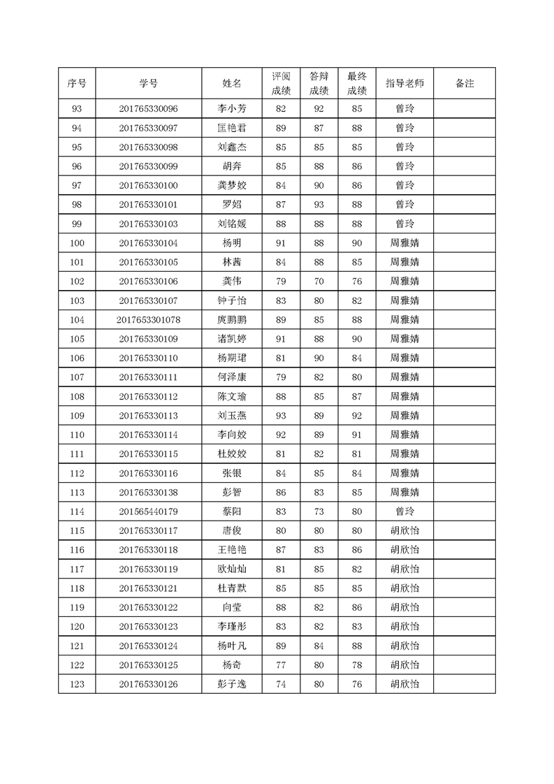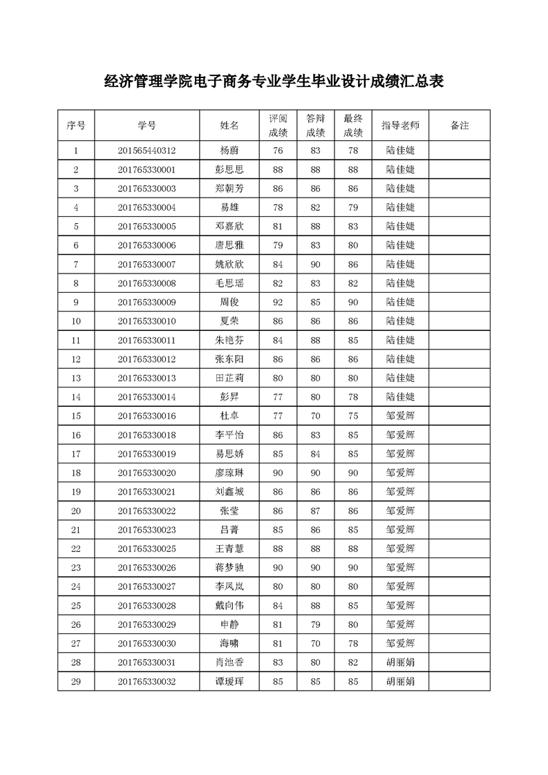 经济管理学院电子商务专业毕业设计(含答辩)成绩汇总表