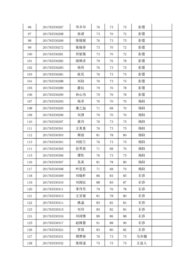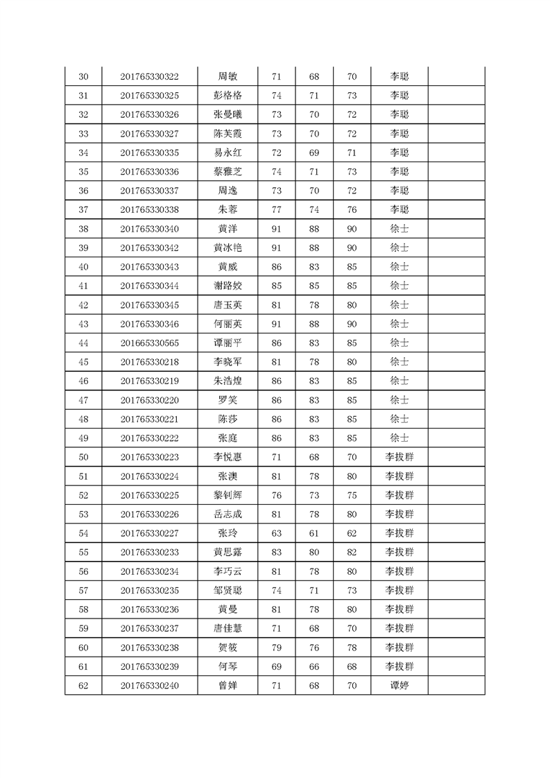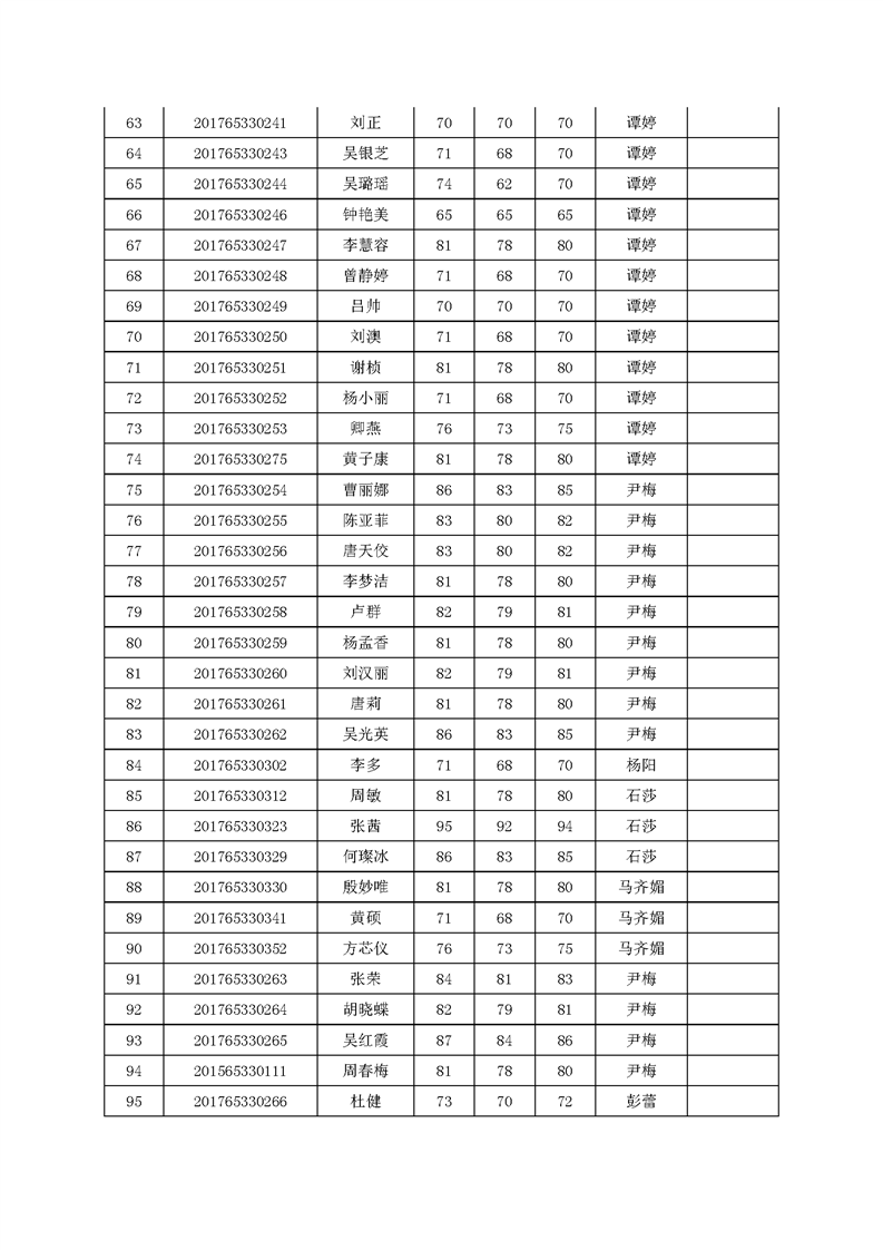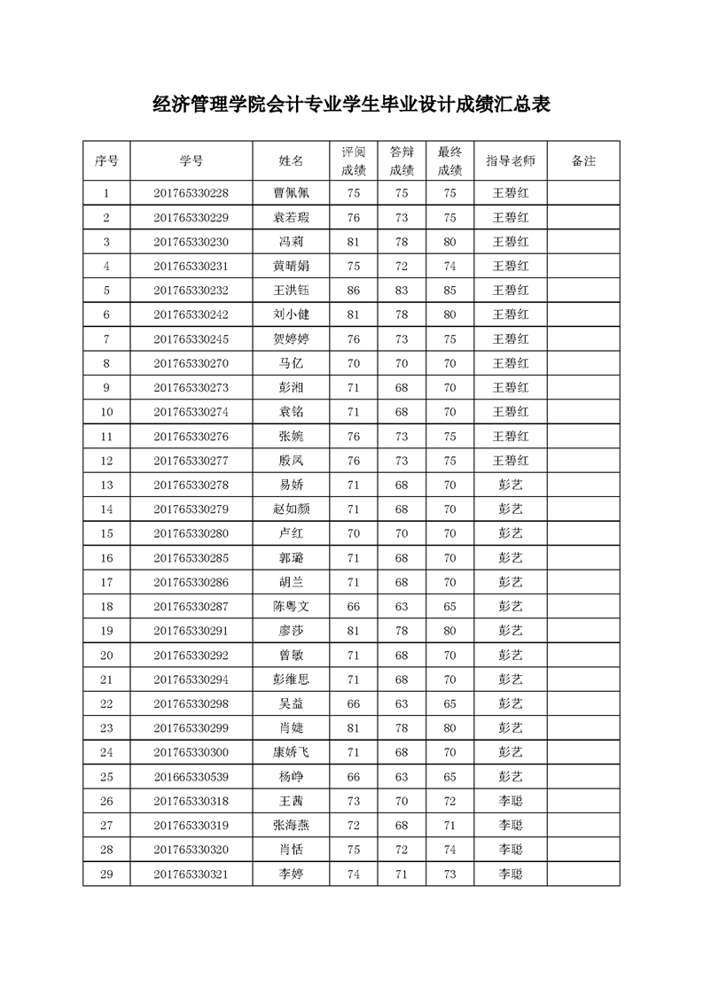 经济管理学院会计专业毕业设计(含答辩)成绩汇总表