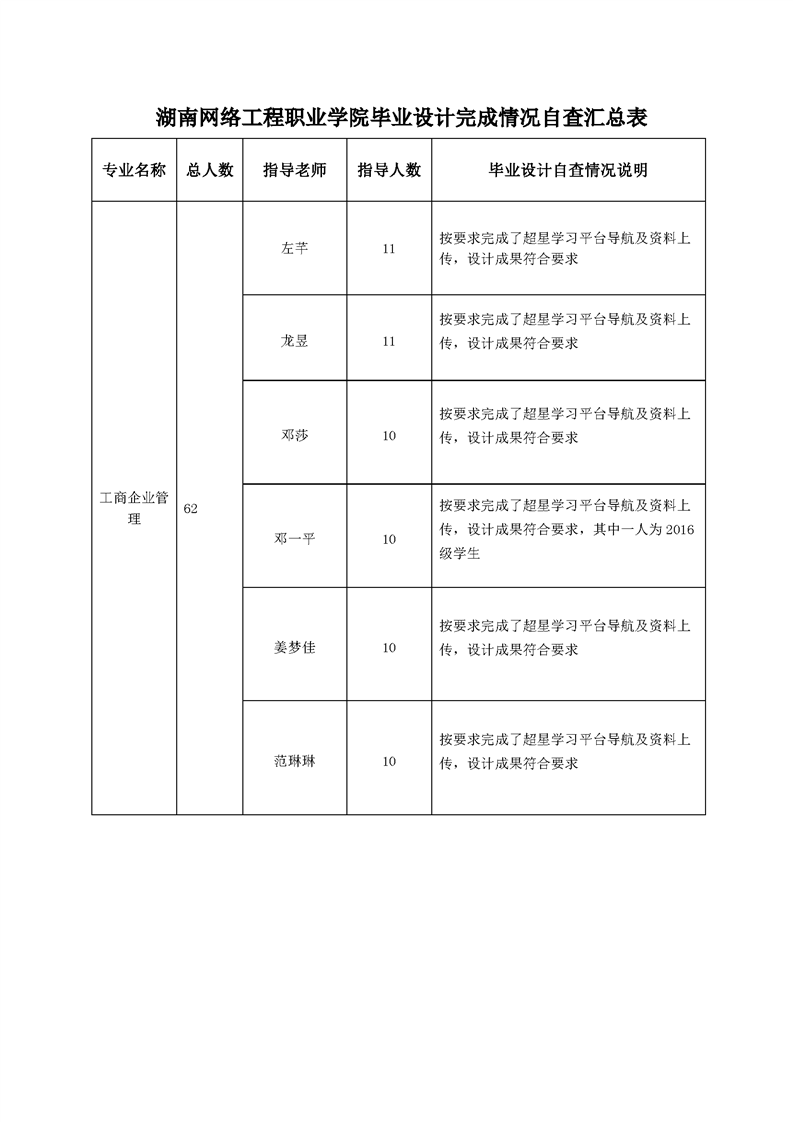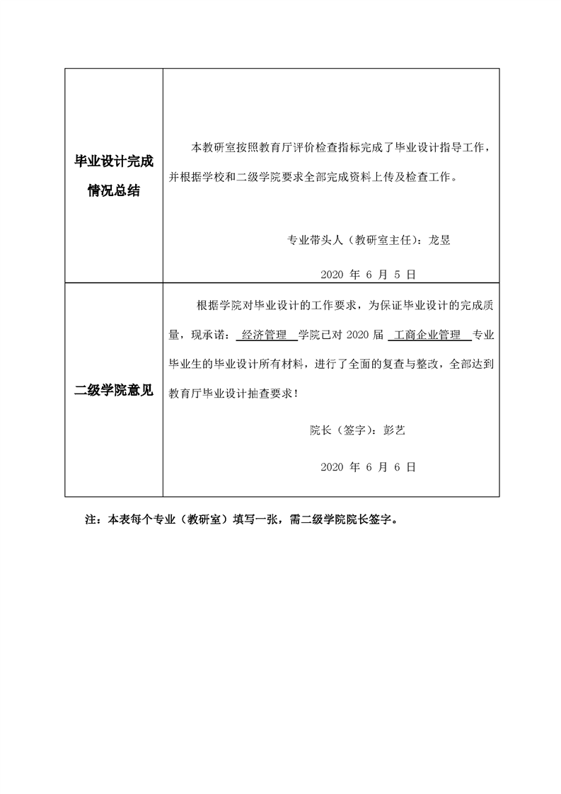 经济管理学院工商企业管理专业毕业设计自查汇总表