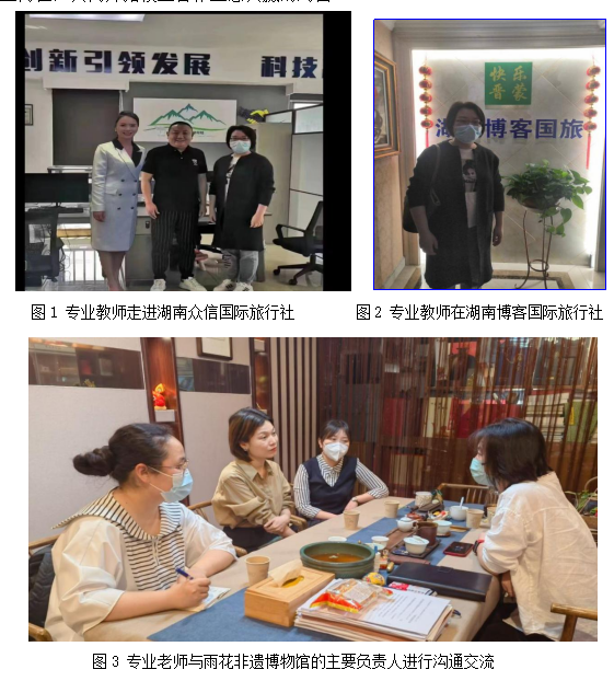为了进一步落实学院访企拓岗促就业专项行动,推进我院毕业生多维度、高质量就业,近日,旅游教研室李晓霞、姜丽芳、彭文喜、薛馨,辅导员刘迪一行五人分赴湖南众信国际旅行社、湖南博客国际旅行社、湖南省雨花区非遗馆进行实地走访调研,深入企业为毕业生开拓就业新渠道。
