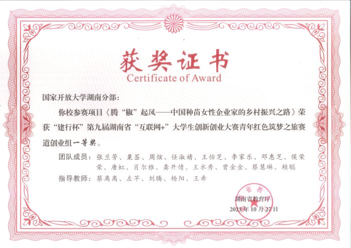 七一建党节来临之际,中共湖南省委教育工作委员会印发《关于表彰2024年度湖南省普通高校优秀大学生党员的通报》,我院邓惠芝同学脱颖而出,被授予“2024年度湖南省普通高校优秀大学生党员”荣誉称号,全省高校有140名大学生获此殊荣。
