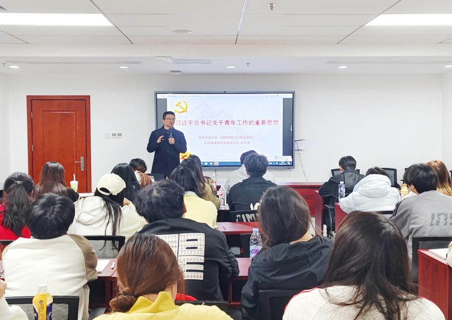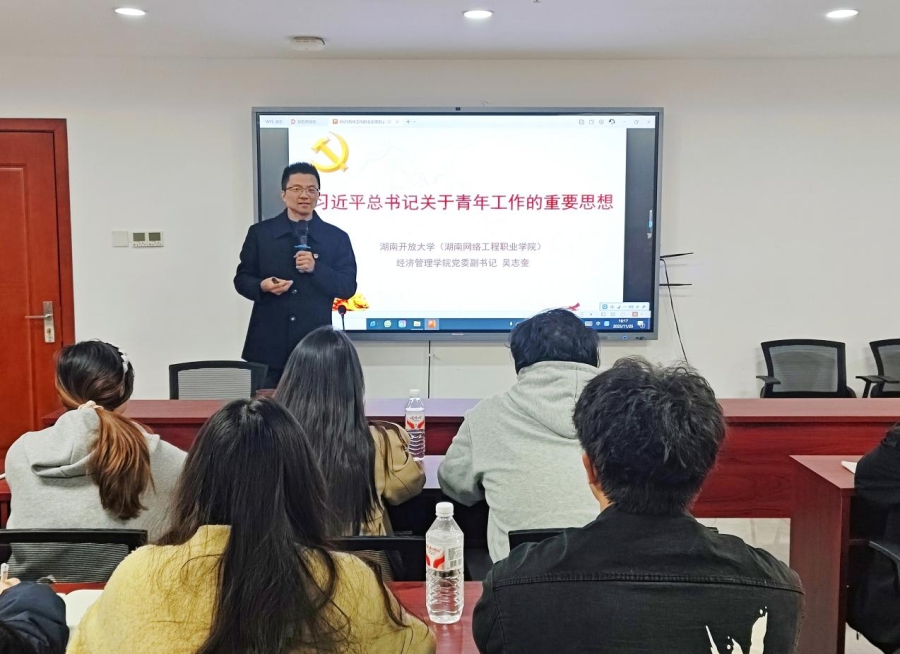 2025年11月25日下午,经济管理学院党委副书记吴志奎在终教楼1314教室为党训班全体学员讲授主题为“习近平总书记关于青年工作的重要思想”专题党课。本次党课围绕青年工作的战略地位、青年运动的时代主题和青年一代的健康成长三个维度展开系统阐释,旨在深化青年学子对新时代使命担当的认知。