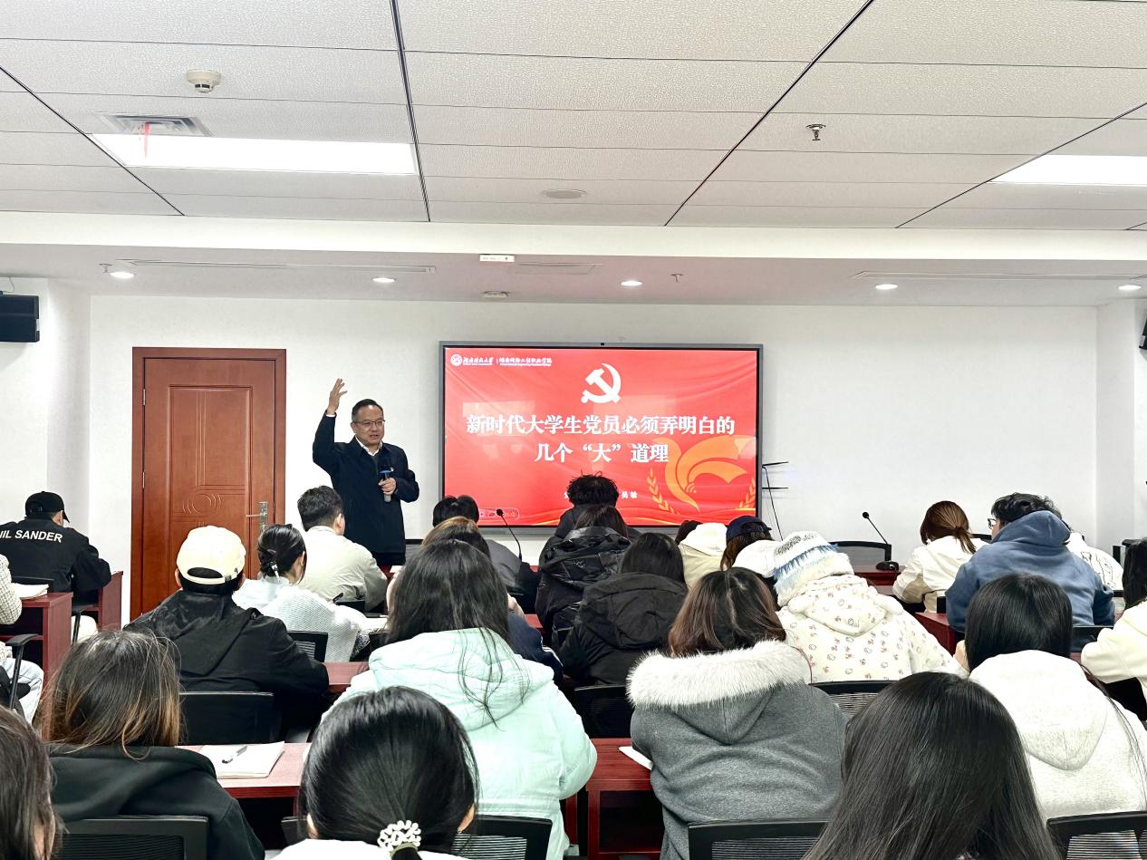 2025年11月18日下午,校党委委员、副校长吴敏于终教楼1314室为经济管理学院党训班讲授主题为新时代大学生党员必须弄明白的几个“大道理”的专题党课。党课由学院党委副书记吴志奎主持,学院学生党支部全体党员以及党训班学员共同参加学习。