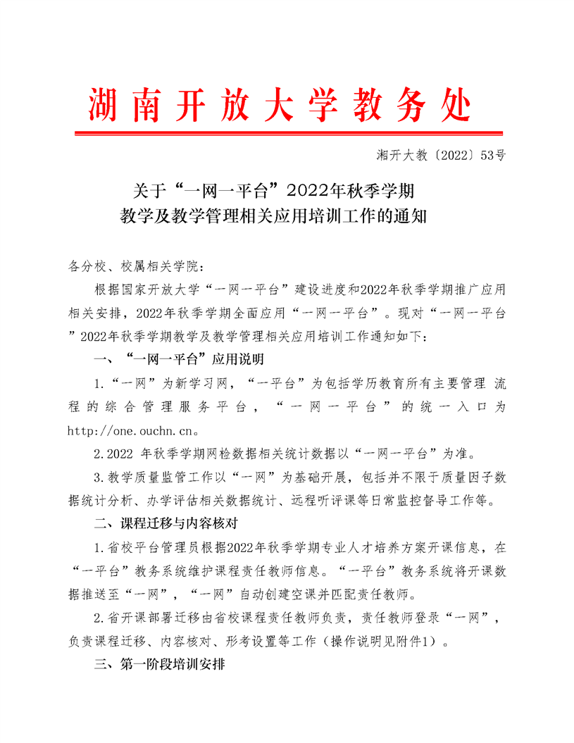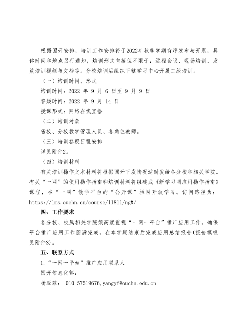 关于“一网一平台”2022年秋季学期 教学及教学管理相关应用培训工作的通知