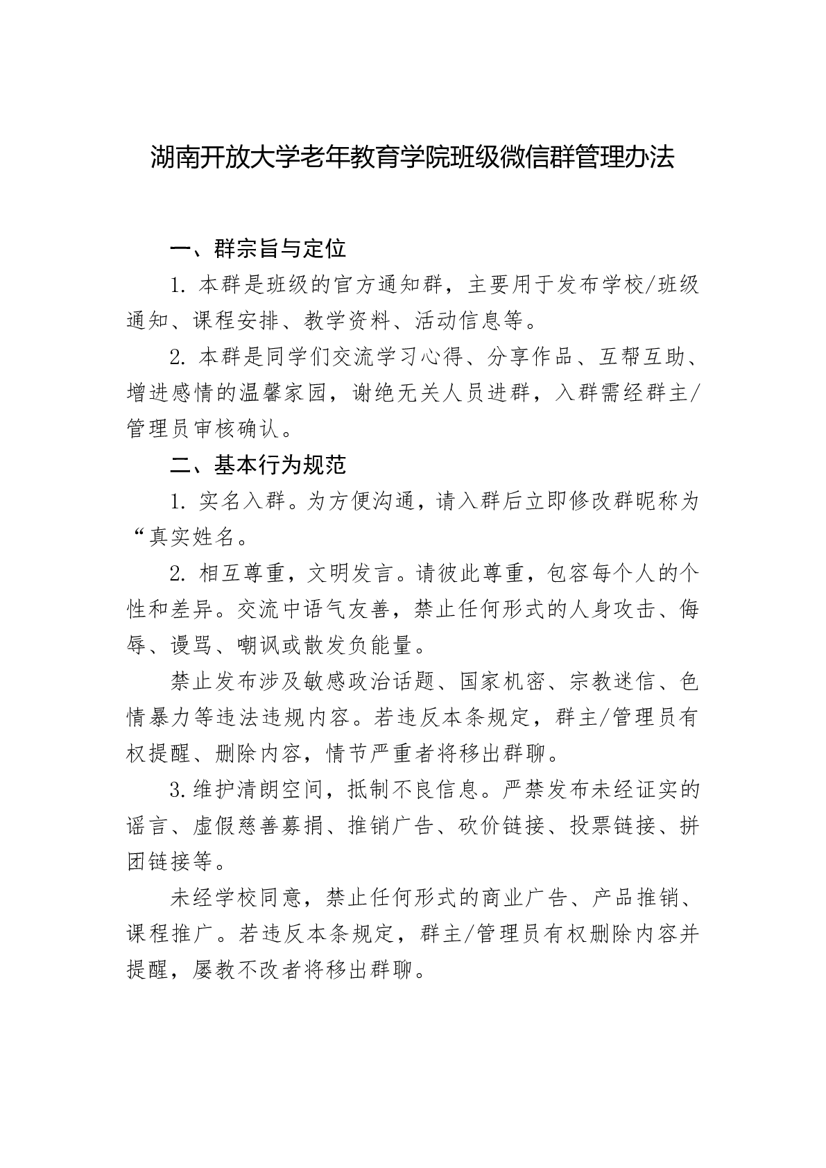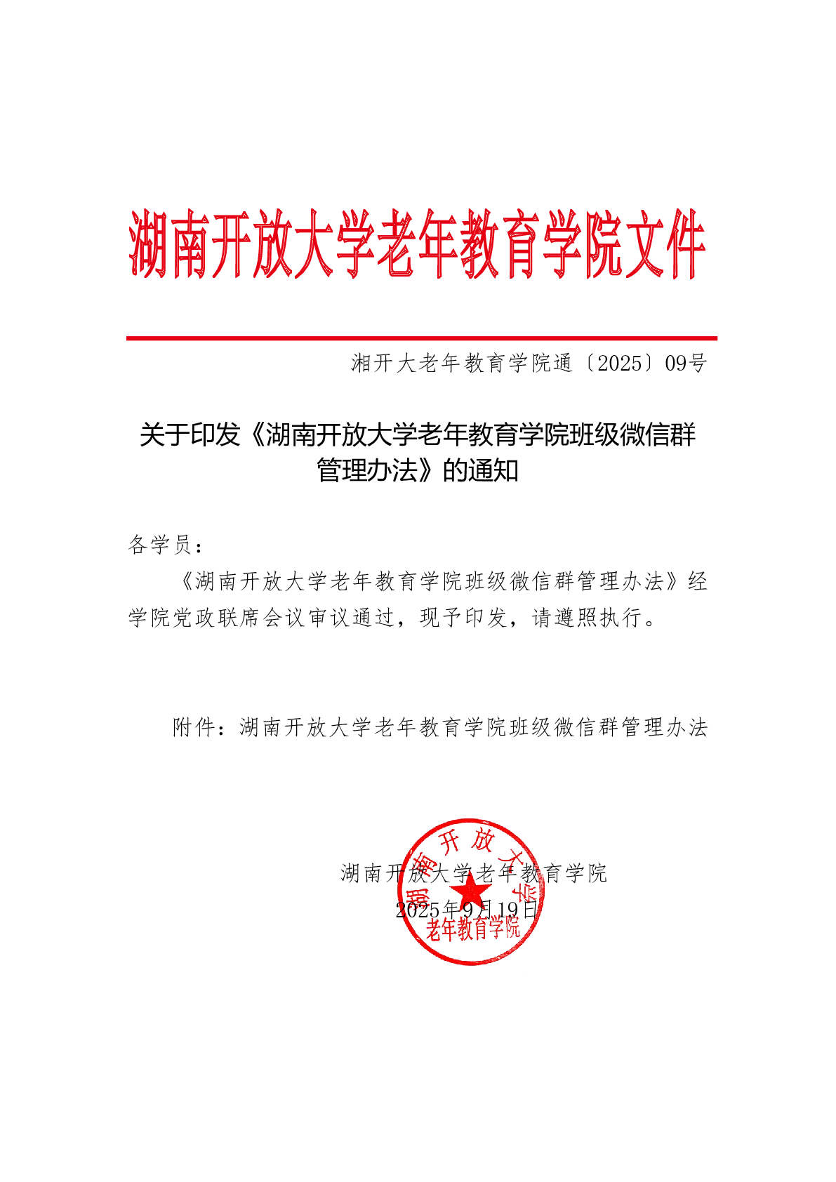 关于印发《湖南开放大学老年教育学院班级微信群管理办法》的通知