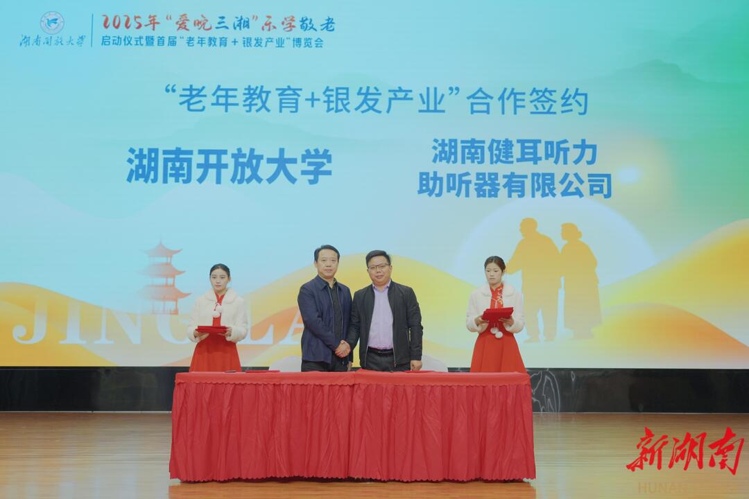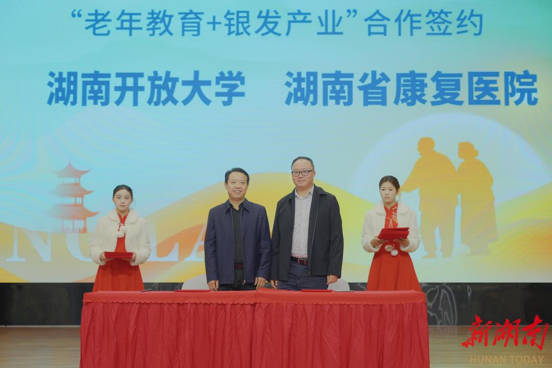 活动现场,湖南开放大学还与四家企事业单位就“健康管理、科技助老、科技爱老、老年游学”四个方向签订“老年教育+银发产业”合作框架协议。
