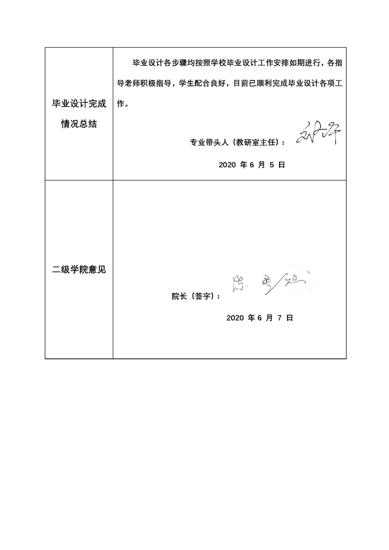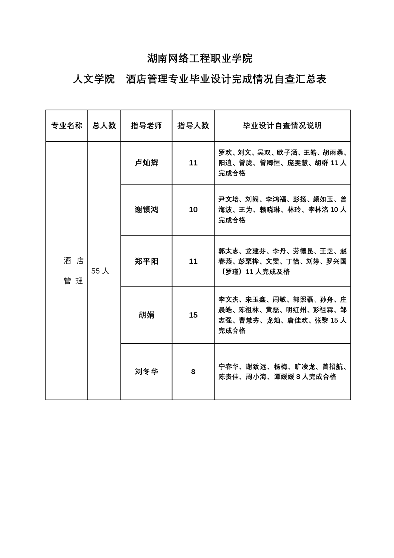 2020届酒店管理专业毕业设计完成情况自查汇总表