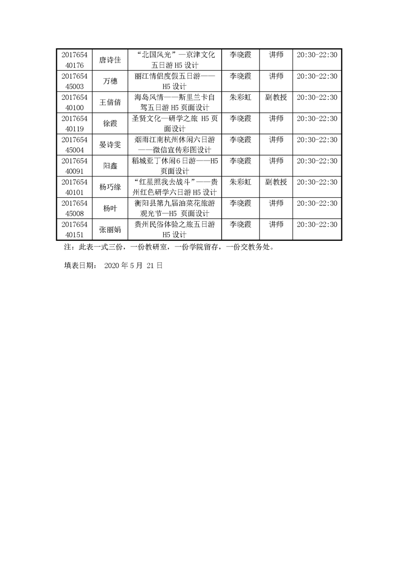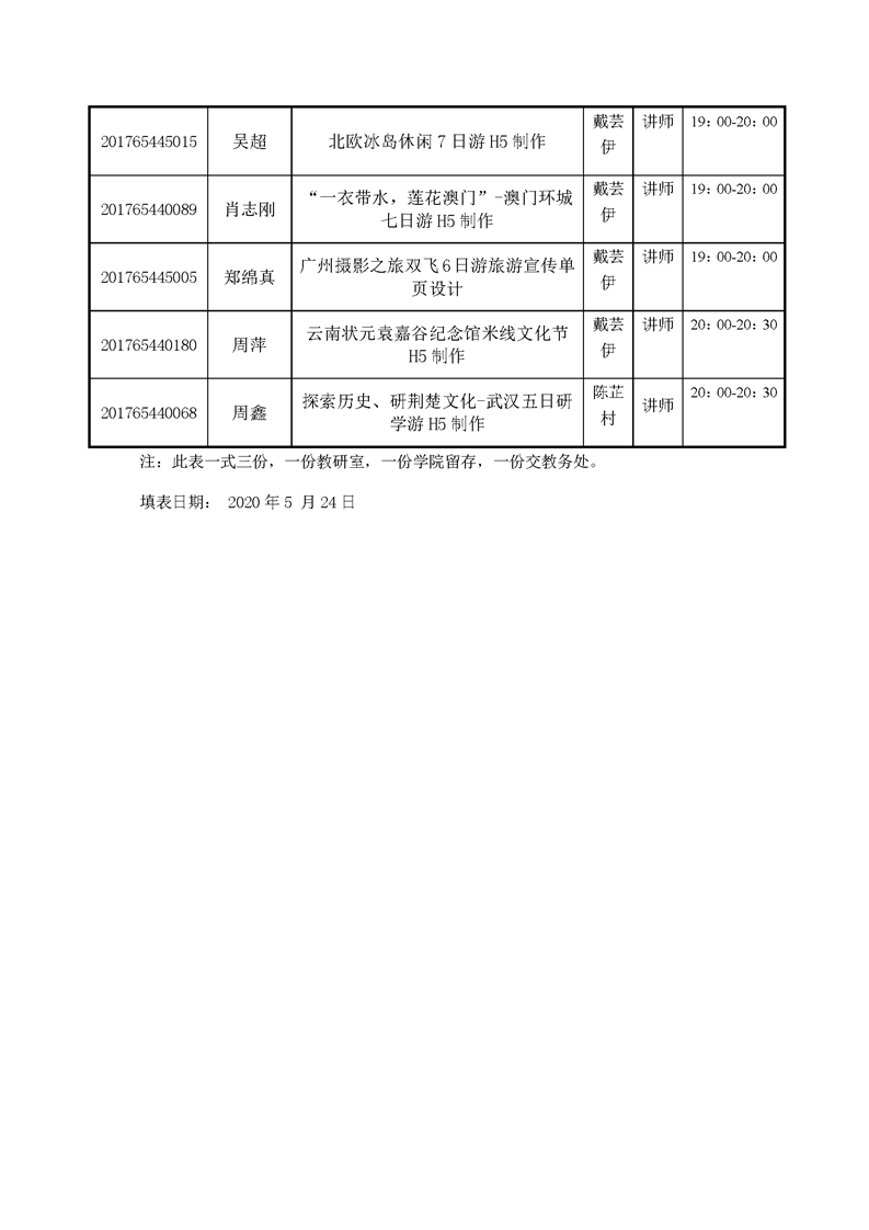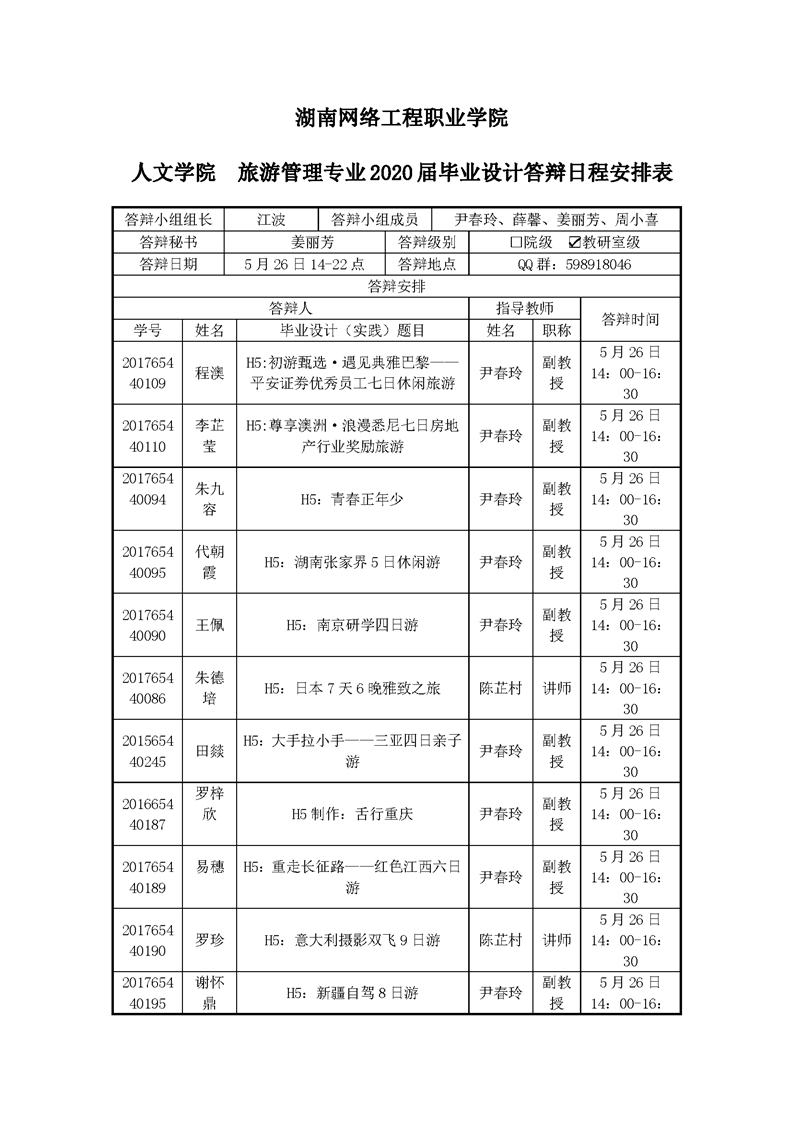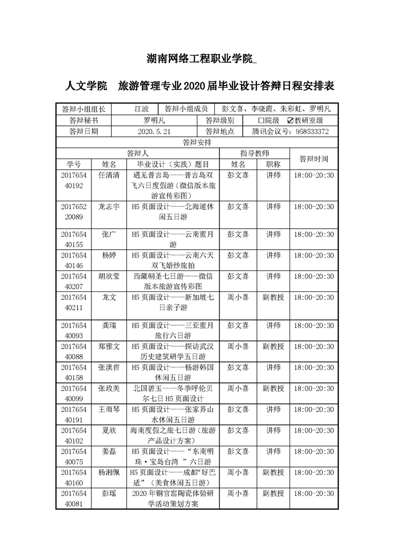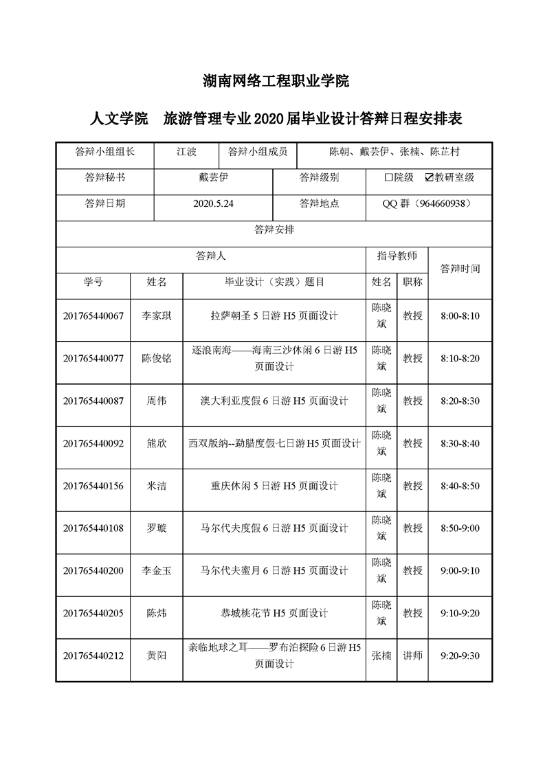 2020届旅游管理专业毕业设计答辩日程安排表