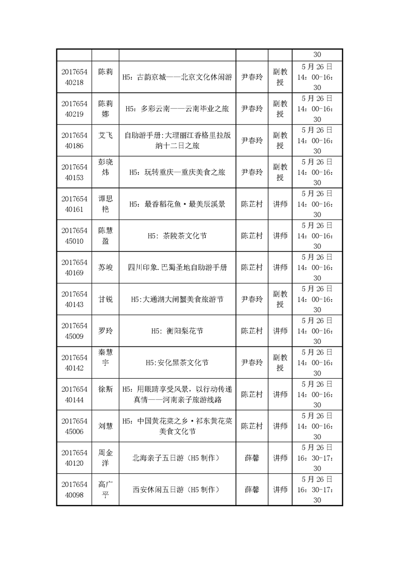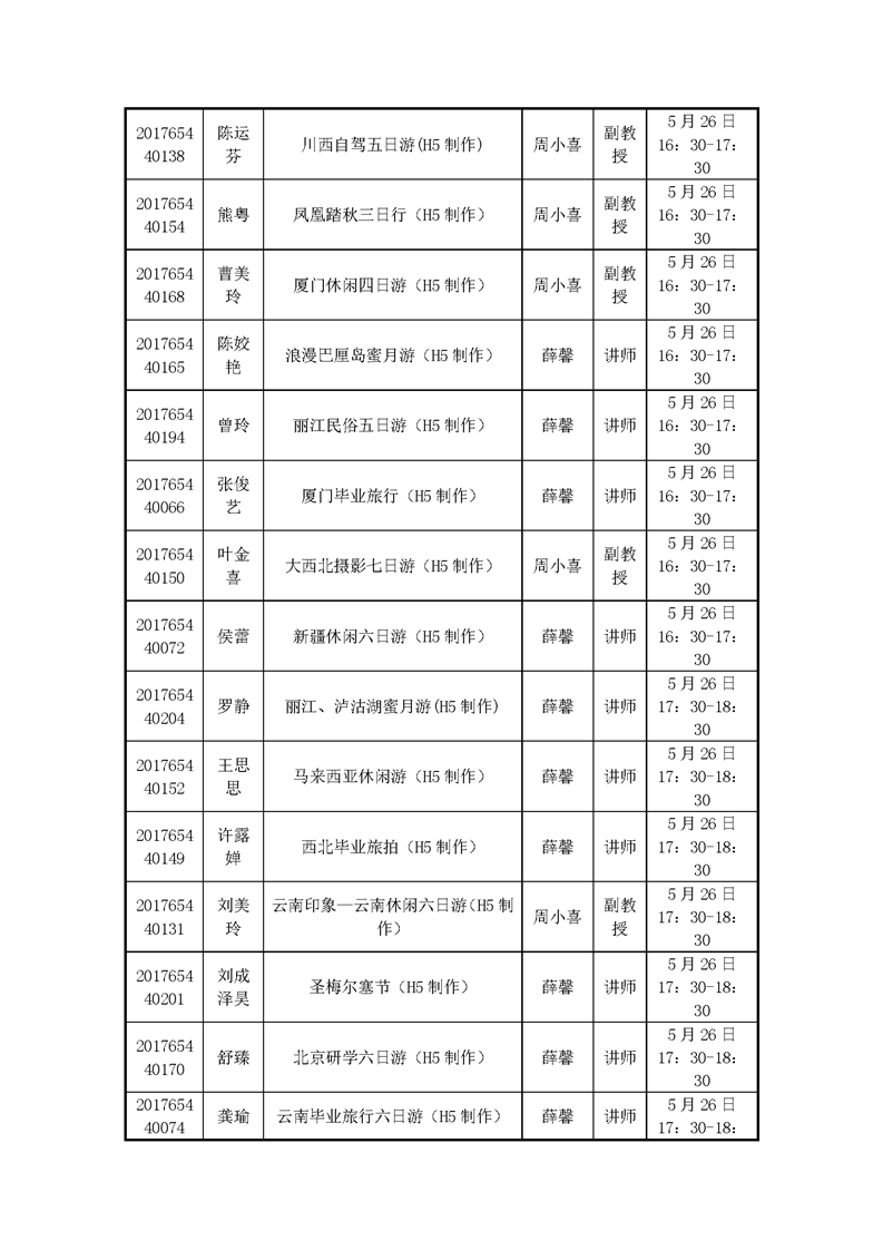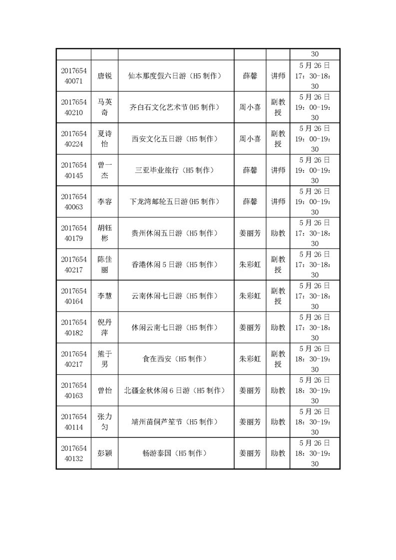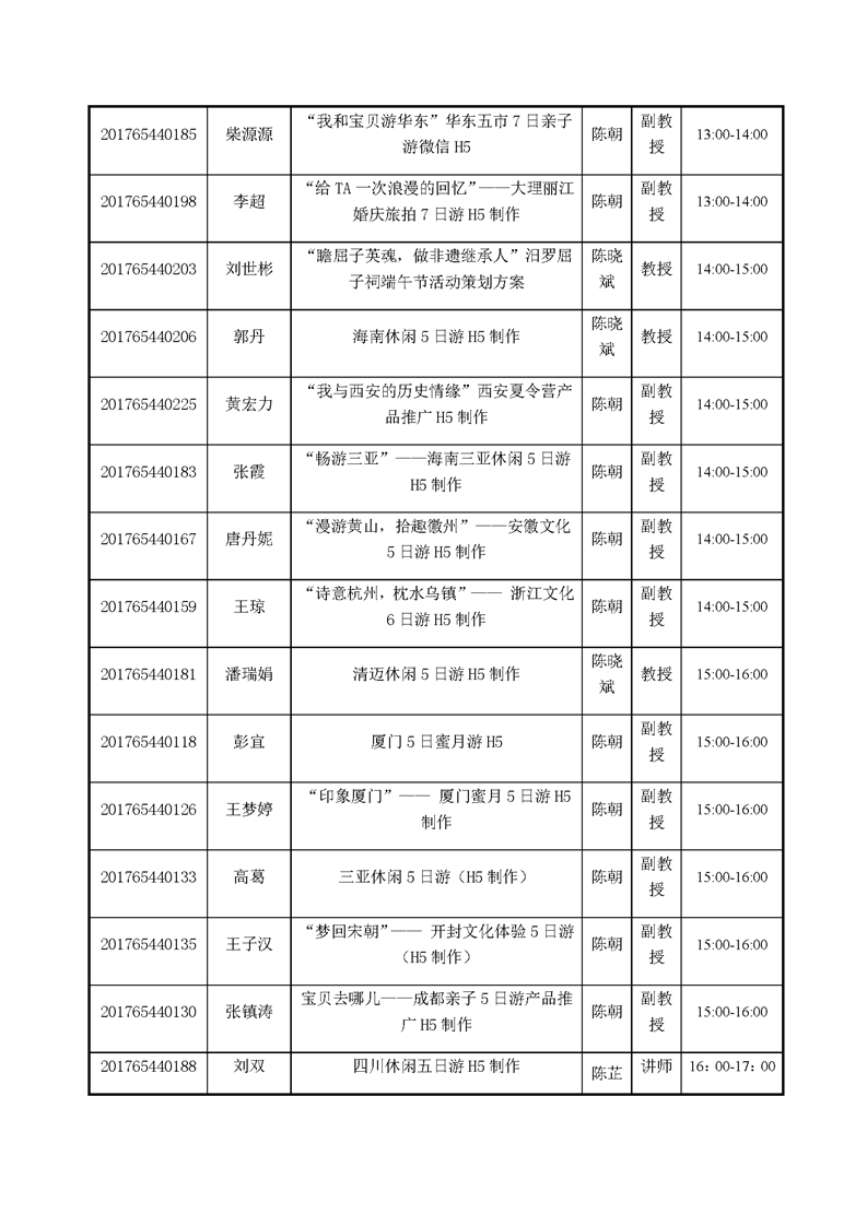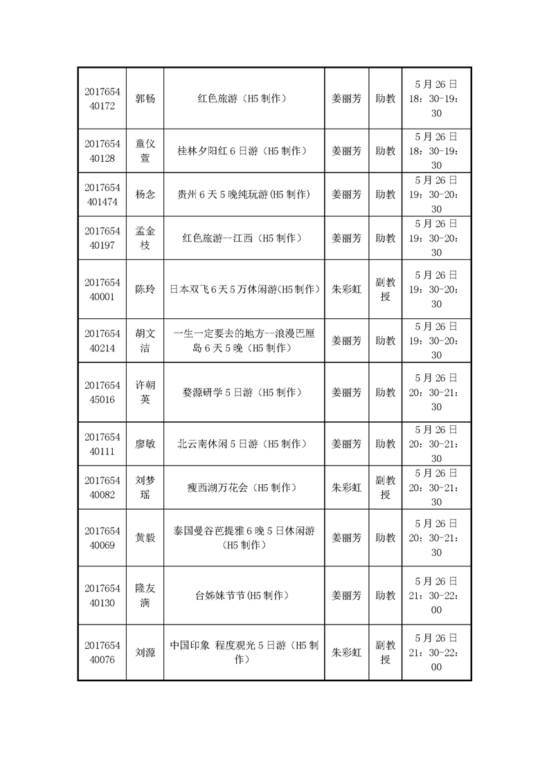 2020届旅游管理专业毕业设计答辩日程安排表