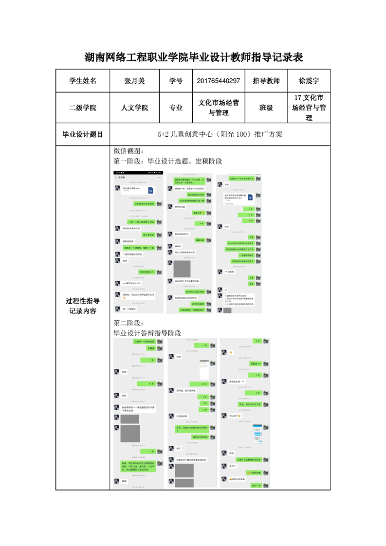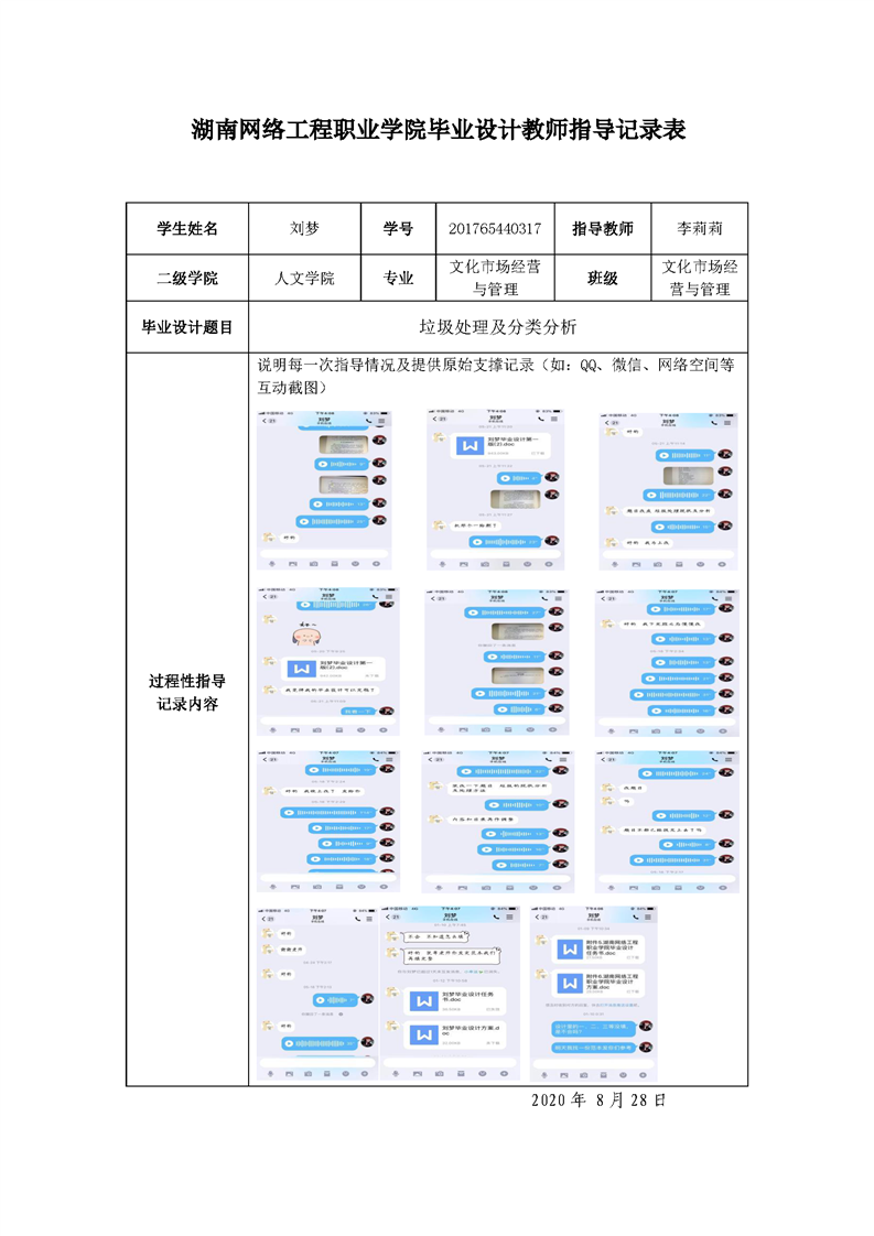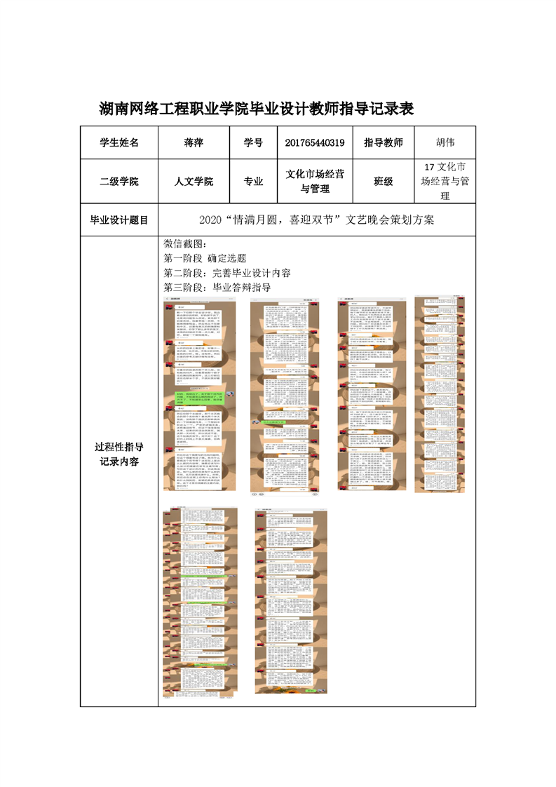 2020届文化市场经营与管理专业毕业设计教师指导记录表