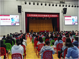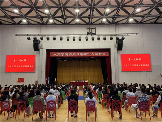 为了让2020级新同学尽快地适应大学生活、迈好大学生活第一步,近日,人文学院全体院领导、新生辅导员、各专业教师及517名新生在体育馆汇聚一堂,举行新生入学教育大会,会议由学院党总支副书记彭玉京主持。