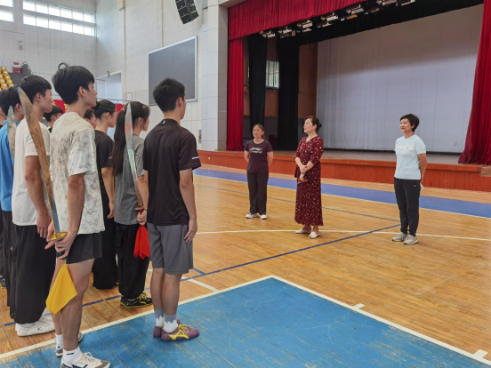 8月14日上午,湖南省第十二届大学生运动会我校代表团团长杨斌校长在体育教研室主任熊纯子老师的陪同下来到了体艺馆看望慰问正在集训的运动队。