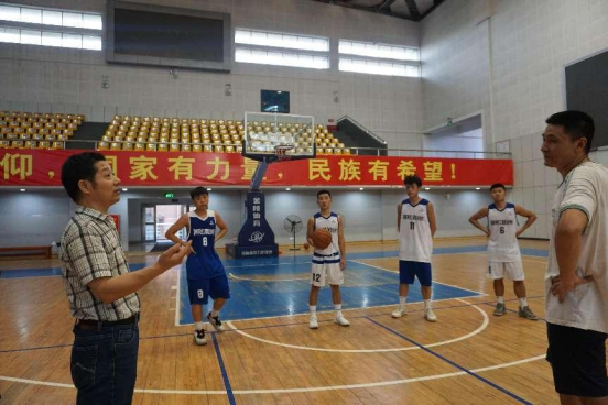 随后,院领导来到体育馆内,不仅有正在闪转腾挪、抡臂鞭腿的武术队,还有正在运球、传球、抢断、投篮、突破、上篮的篮球队。
