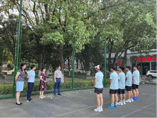 最后,院领导一行来到网球场慰问正在训练的网球队队员们。刘建宏院长对队员们冒着高温酷暑坚持在网球场训练给予了高度的赞扬!
