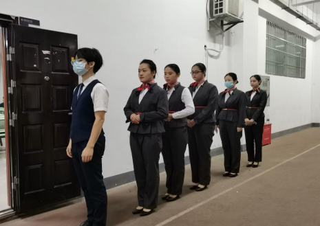 全体学生面对考官们泰然自若,有条不紊地展示出了民航服务人员的职业素养和专业技能,顺利完成本次技能抽查自评测试。