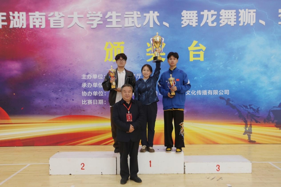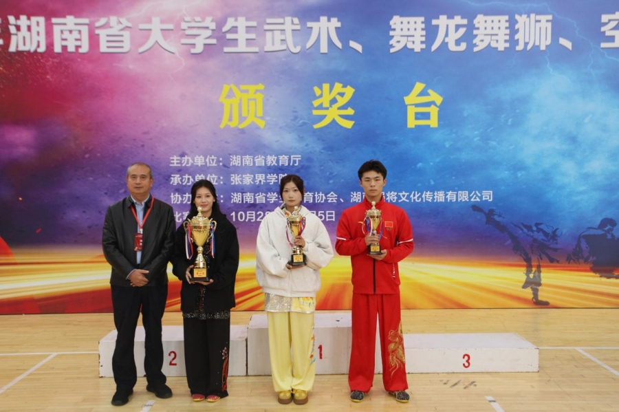 2025年11月1日至5日,由湖南省教育厅主办的2025年湖南省大学生武术比赛在张家界学院成功举办。来自全省60所高校的462名运动员齐聚一堂,展开了为期五天的激烈比拼。我校武术队凭借扎实的技术功底、稳定的赛场发挥和团结拼搏的精神风貌,在众多参赛队伍中脱颖而出,最终斩获高职组团体总分第一名和集体项目第一名,并在个人项目中斩获6金、3银、3铜的优异成绩,充分展现了网院学子昂扬向上的精神风貌与卓越的综合素养。