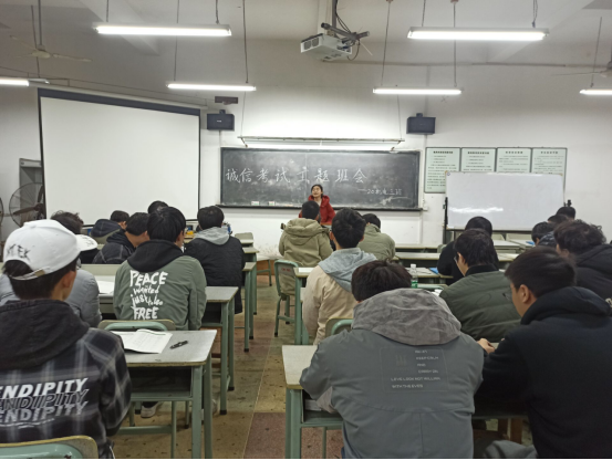 活动期间网络技术学院47个班级分别开展以“考试诚信教育”为主题的集体班会。其中19级班级以线上方式开展,20、21级班级在线下召开班会。班会中同学们认真学习贯彻教育厅颁布的《国家教育考试违规处理办法》,《考生守则》及考试诚信等相关内容,并开展激烈讨论,对于违反考试诚信问题的危害进行了深刻反思。