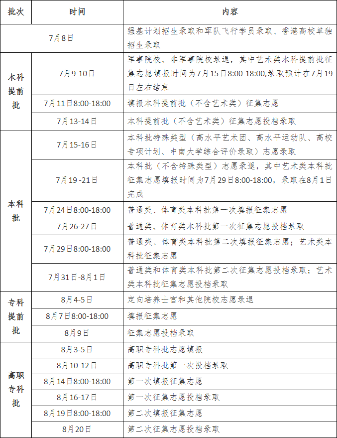 2021新高考-湖南2021普通高校招生录取时间安排表