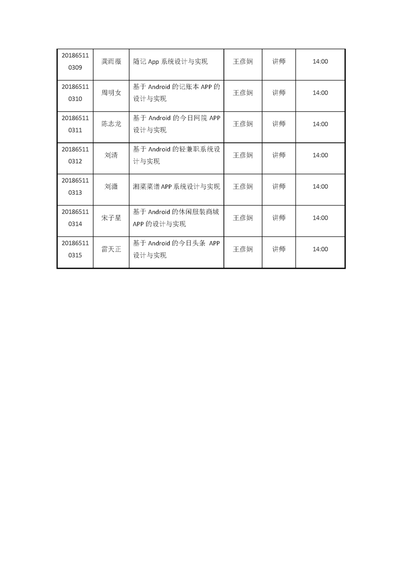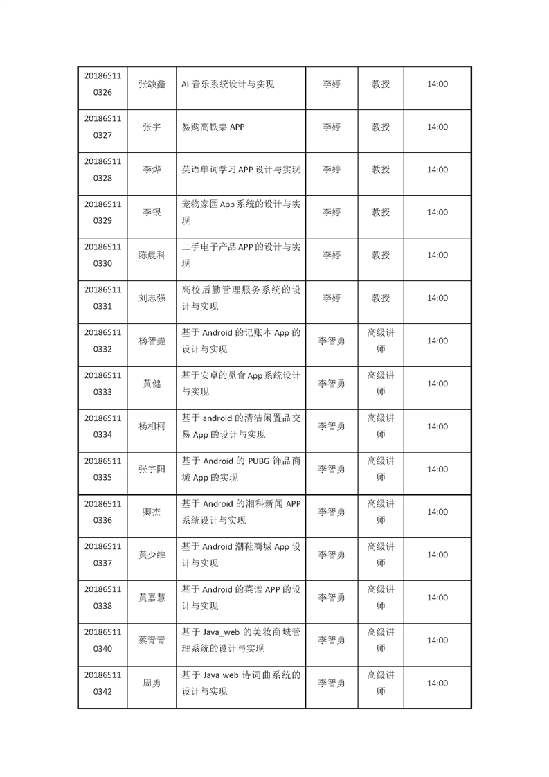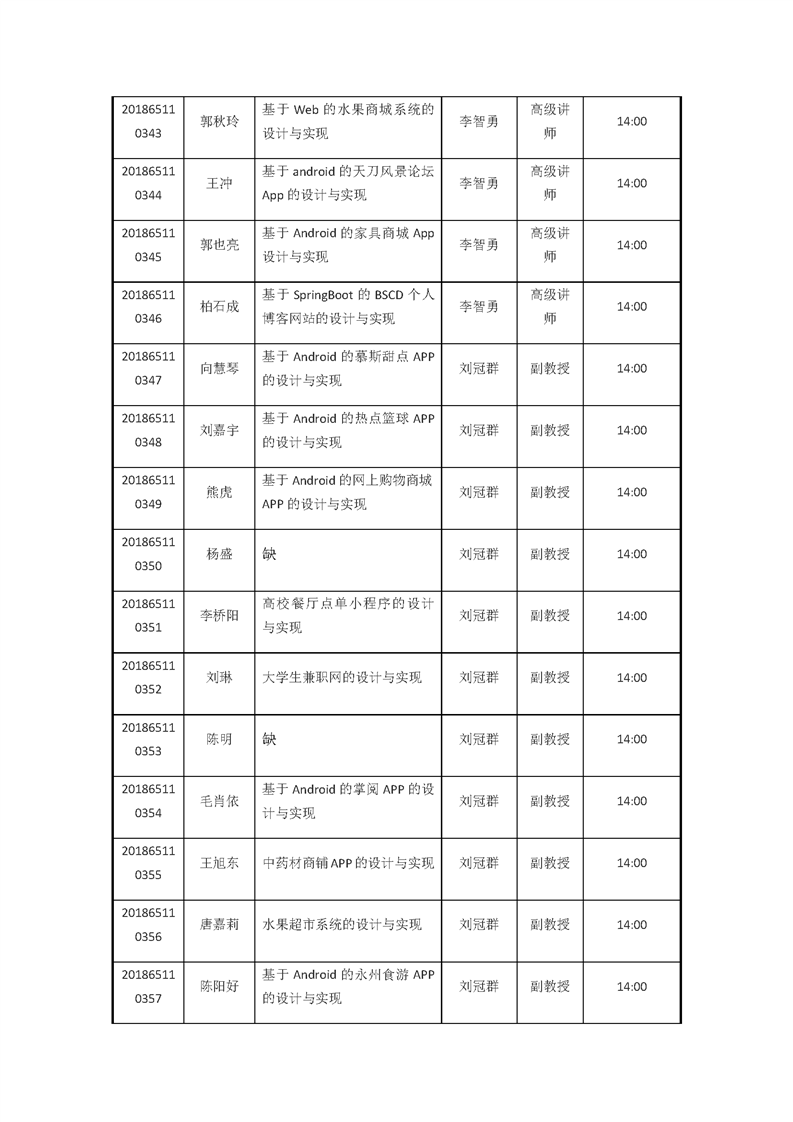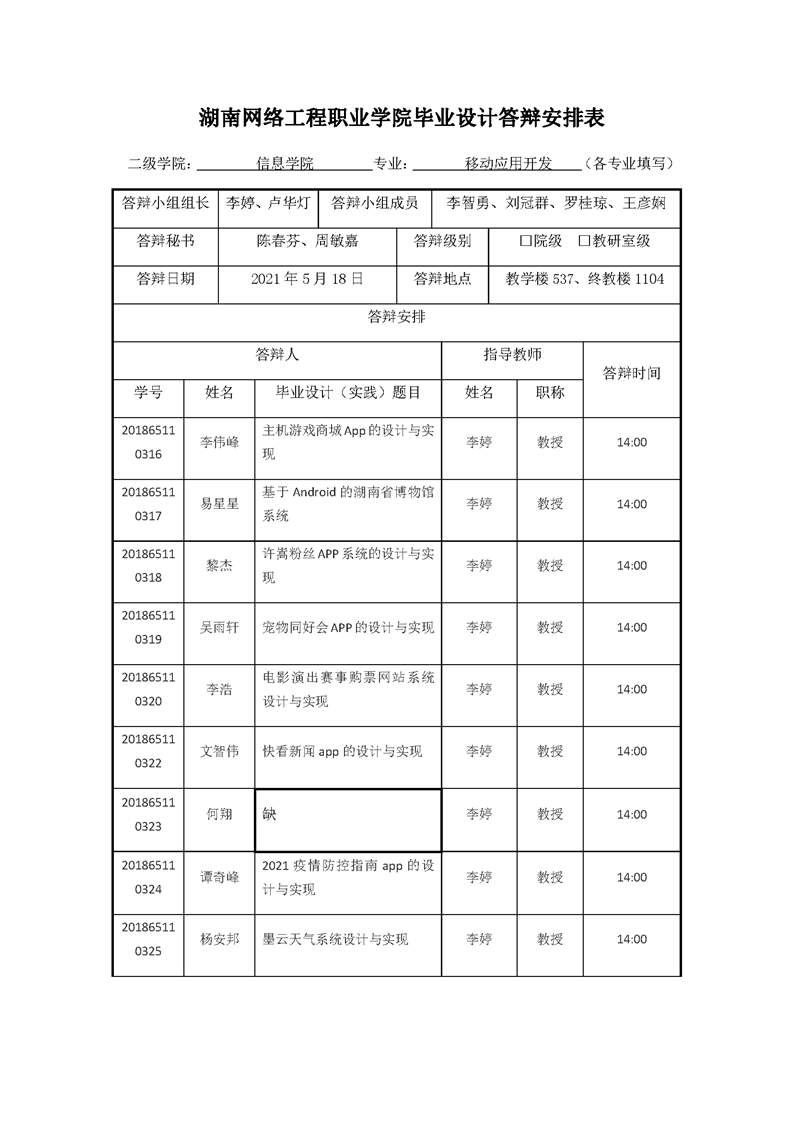 2021届移动应用开发专业毕业设计答辩日程安排表