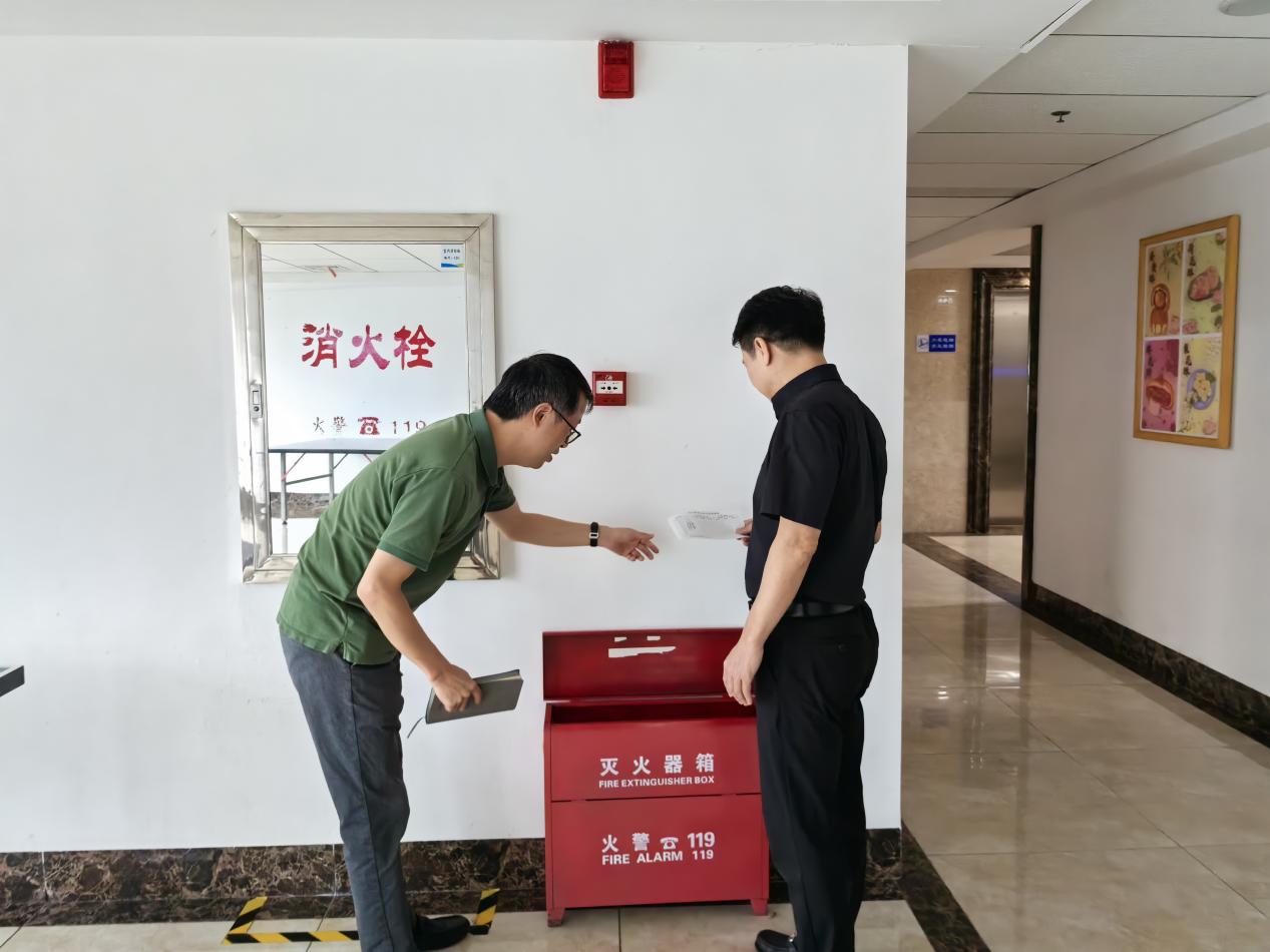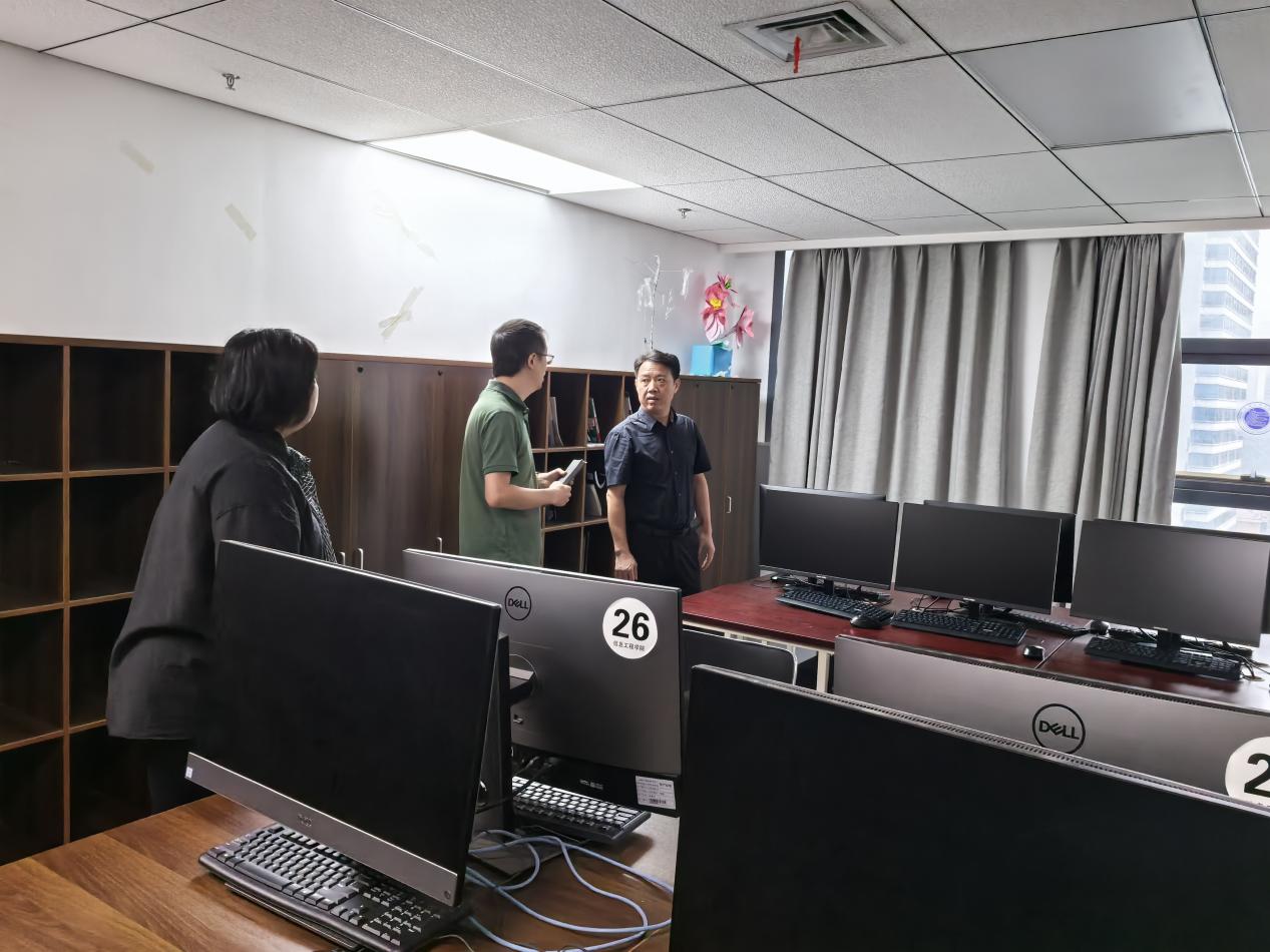 在此次安全检查中,欧俊校长认真检查了实训室内的消防设施和安全措施,包括灭火器、疏散通道、应急照明等设备的完好情况,并与相关负责人进行了深入交流。