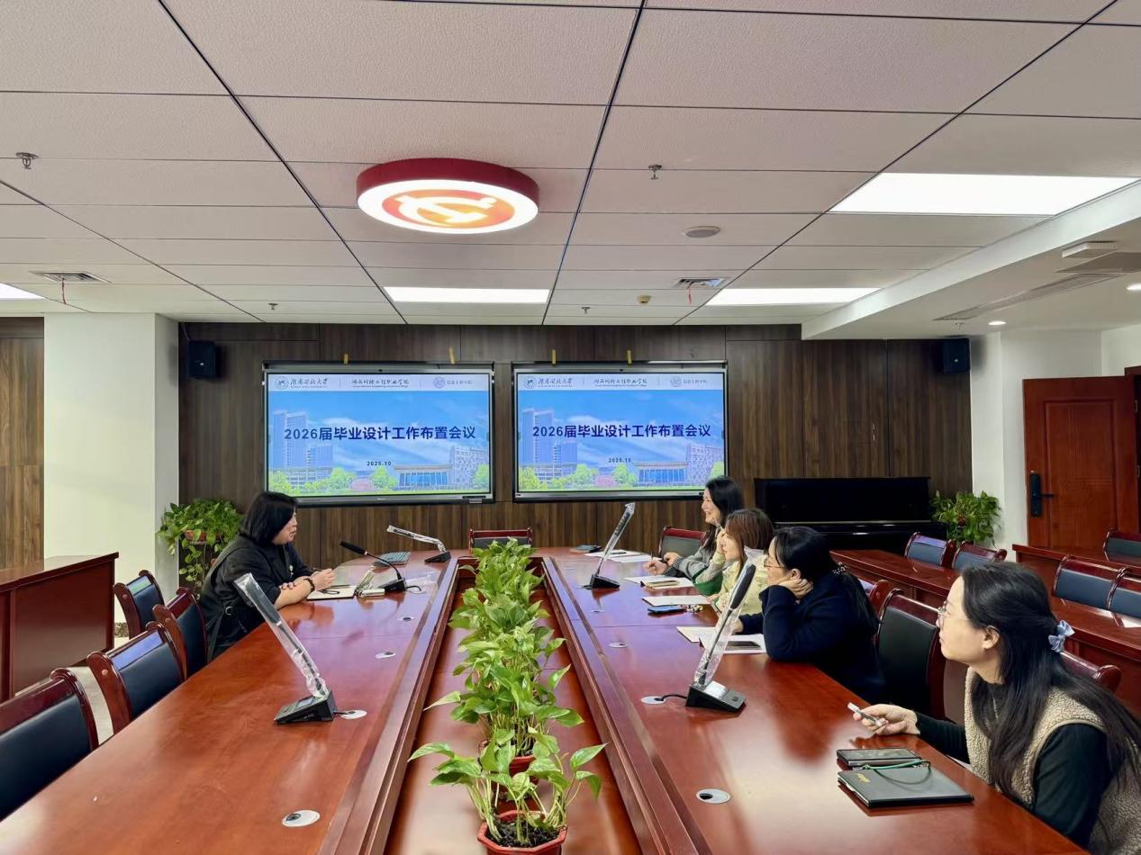 11月3日,我院召开了2026届毕业设计工作布置会议,全面安排部署新一届毕业生设计任务。会议由学院副院长刘艳主持,数字媒体技术、大数据技术、移动应用与开发、软件技术、艺术设计五个教研室主任及代表教师参会。