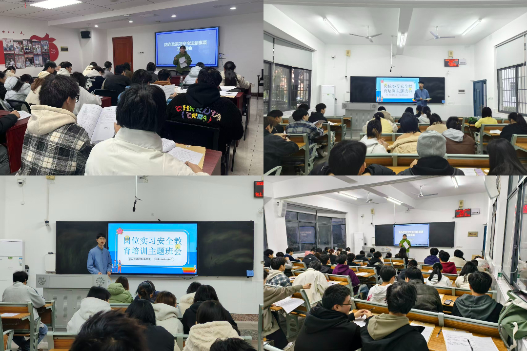 为切实加强学生岗位实习期间的安全保障,提升学生安全防范意识,近日,信息工程学院组织2023级各班级陆续开展岗位实习安全教育培训主题班会。全院数字媒体技术、大数据技术、移动应用开发、软件技术、艺术设计五个专业的所有班级分别组织了专题培训,为即将踏上实习岗位的学生筑牢安全防线。