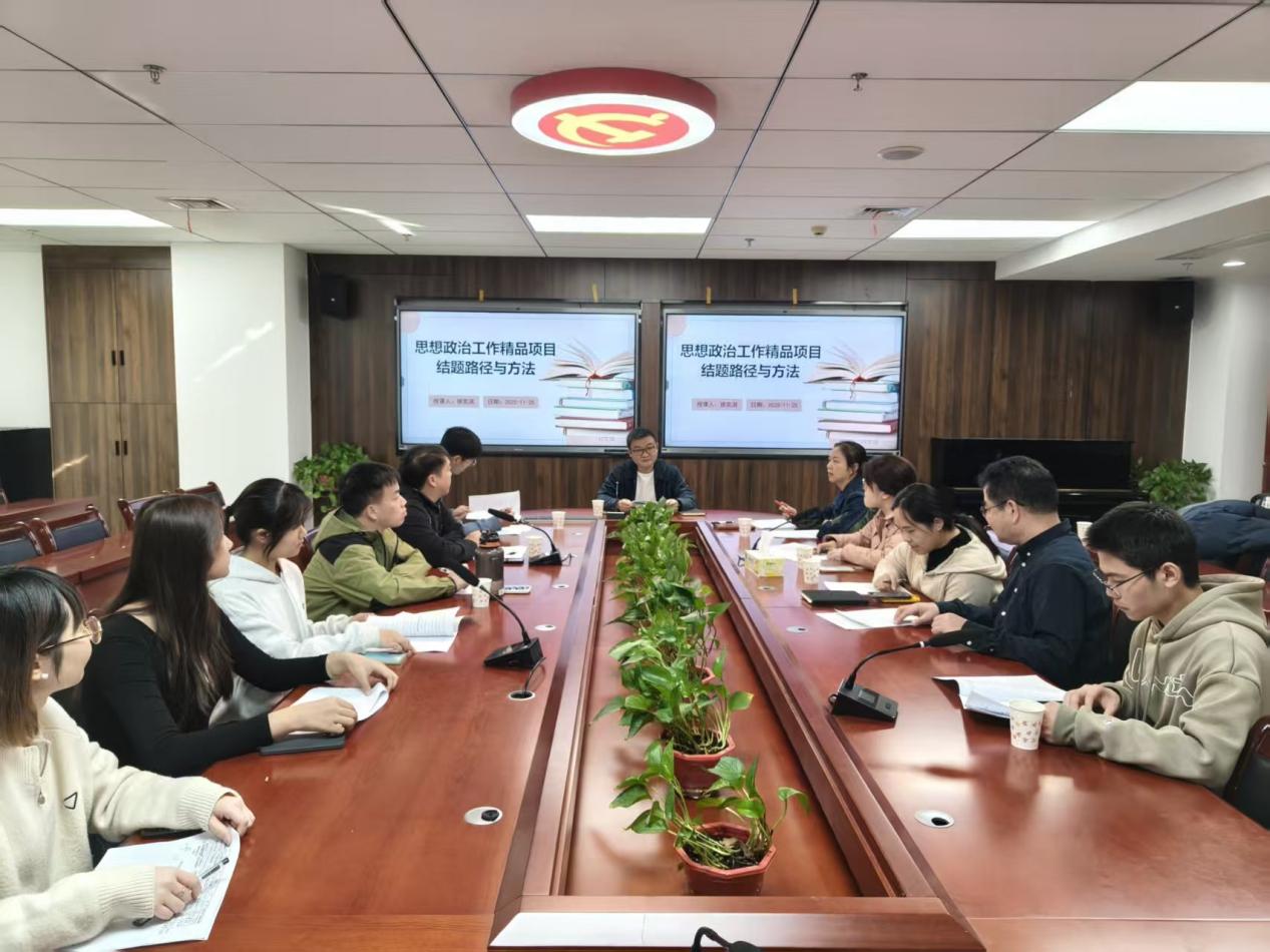 银奕淇老师紧扣“思想政治工作精品项目结题路径与方法”核心,结合我院学科优势,围绕项目成果总结、结题材料准备和成果推广应用等环节进行系统授课。他从自己的经验出发,指出项目成果总结要聚焦育人实效,突出数字化赋能思政教育特色,针对学院思政工作实际提炼创新亮点。针对结题材料,他结合典型案例,强调了结题报告、支撑材料和答辩展示的相关要求,旨在立体呈现思政工作与学生管理、专业建设融合成效。