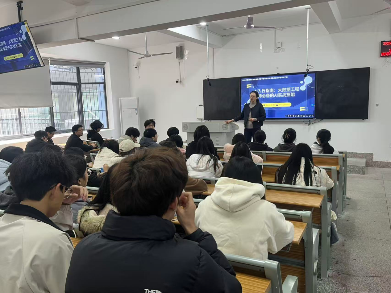 近日,我校选派赴2024年湖南省普通高等学校国内访问学者项目并荣获“优秀”评定等级的曹清清老师,为大数据技术专业的同学们带来了一场题为“大数据工程师必备的AI实践技能”的精彩专题讲座。