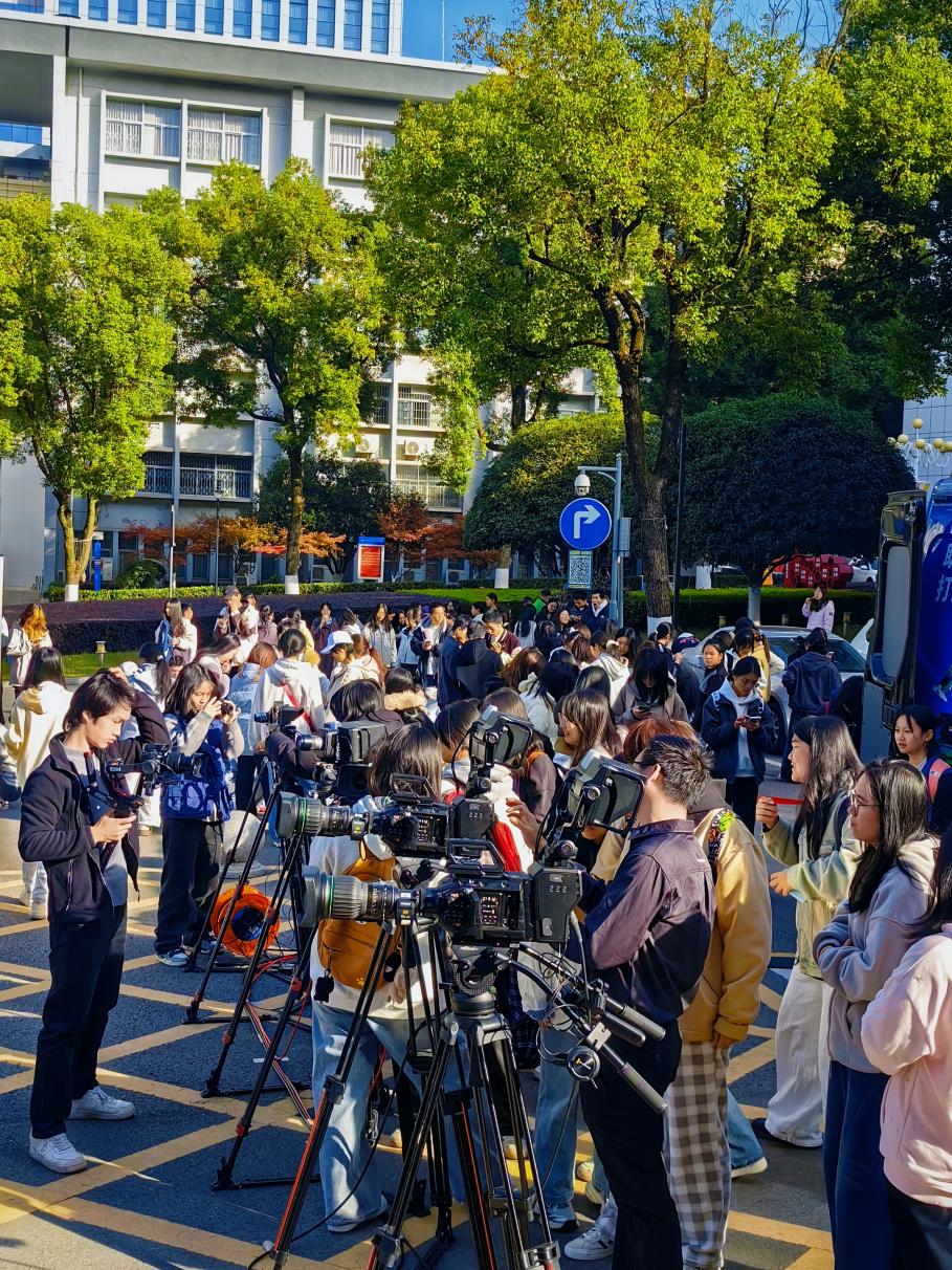 为深化产教融合、推动数字媒体专业教学与行业前沿技术接轨,2025年11月27日,湖南开放大学信息工程学院迎来了一场别开生面的技术展示活动——搭载Blackmagic Design 2110 IP制播系统的转播车正式驶入校园,为师生带来一场沉浸式的广播电视制播技术体验。此次活动不仅展示了现代广电行业向全IP化、高效率、高质量转型的最新成果,也为数字媒体专业学生提供了近距离接触行业尖端设备的宝贵机会。信息工程学院党委书记石璨、院长谭阳、招生就业处副处长王希、数字媒体专业教师金晶及全体高职数字媒体专业及楚怡本科的同学500余人参加了此次活动。