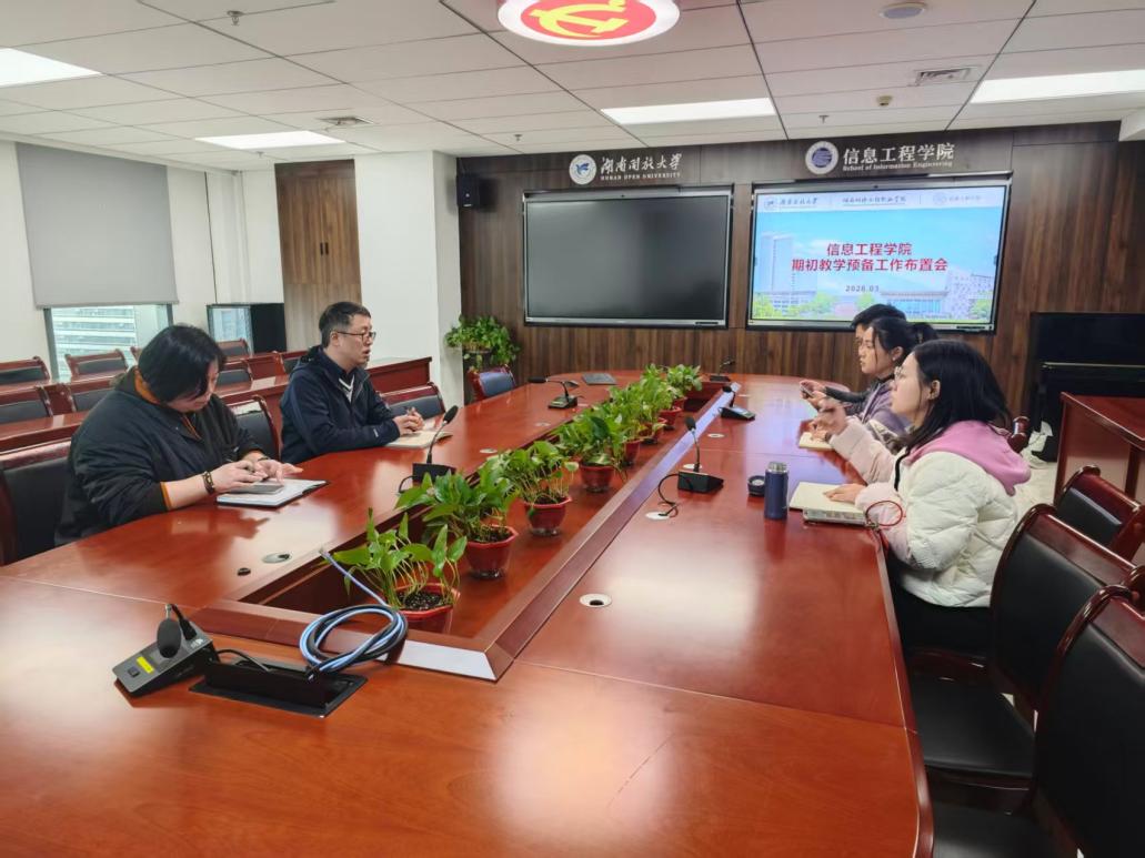 为确保2026年上学期教学工作平稳开局、有序推进,3月6日,信息工程学院召开期初教学预备工作布置会,会议聚焦教学质量提升核心,系统部署开放教育、高职教育、成人教育的期初教学重点工作,明确新学期工作开展方向。学院院长谭阳、副院长刘艳、教务科研办公室及实训室负责人参加会议。