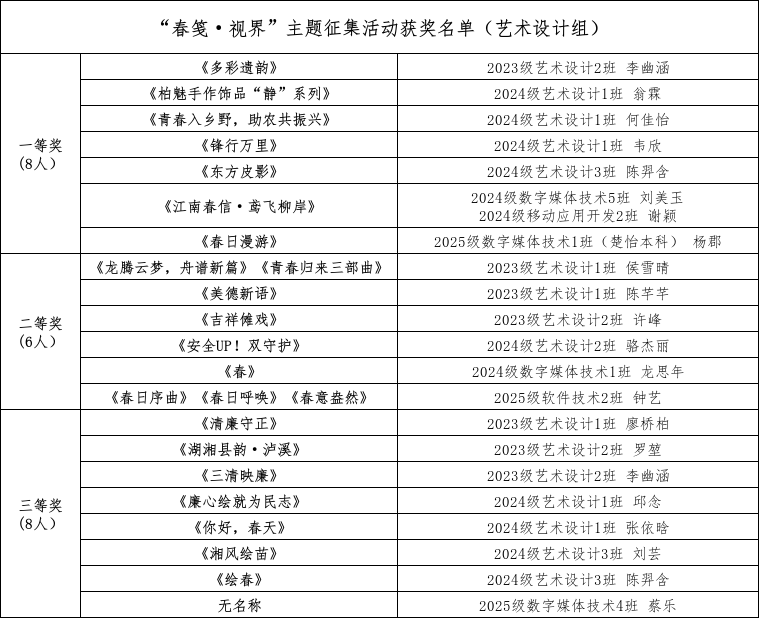 经过活动评审组严格评审,悉心把关,共评选出摄影组一等奖5名、二等奖4名、三等奖7名;艺术设计组一等奖8名、二等奖6名,三等奖8名,现将获奖名单公布如下。获奖作品将通过“青芮小屋”公众号择优展示,在此向所有获奖同学表示祝贺。