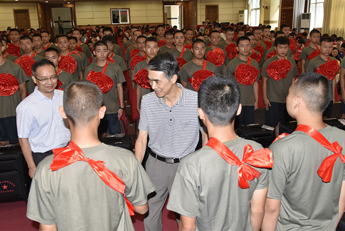 会上,入伍学生代表欧阳子益和教师代表吴志奎分别作了发言。欧阳子益代表新入伍的同学感谢学校对他们的培养,表达了他们对军营生活的憧憬和向往,也表示在今后的部队生活中将积极发扬吃苦耐劳的精神,为校争光,为国争光。吴志奎从不忘初心、牢记使命,严格要求、刻苦训练,建功立业、为母校争光三个方面希望即将入伍的新兵争当“有灵魂、有本事、有血性、有品德”的新时代军人。