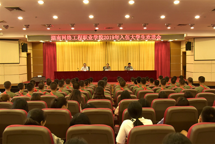 9月1日上午,我校在远教楼报告厅举行2019年新兵入伍欢送会。校党委书记陈建民,校党委委员、副校长吴敏出席,网院各二级学院领导、学工办主任、辅导员及45名入伍新兵参加欢送会。会议由校党委武装工作部部长李涌涛主持。