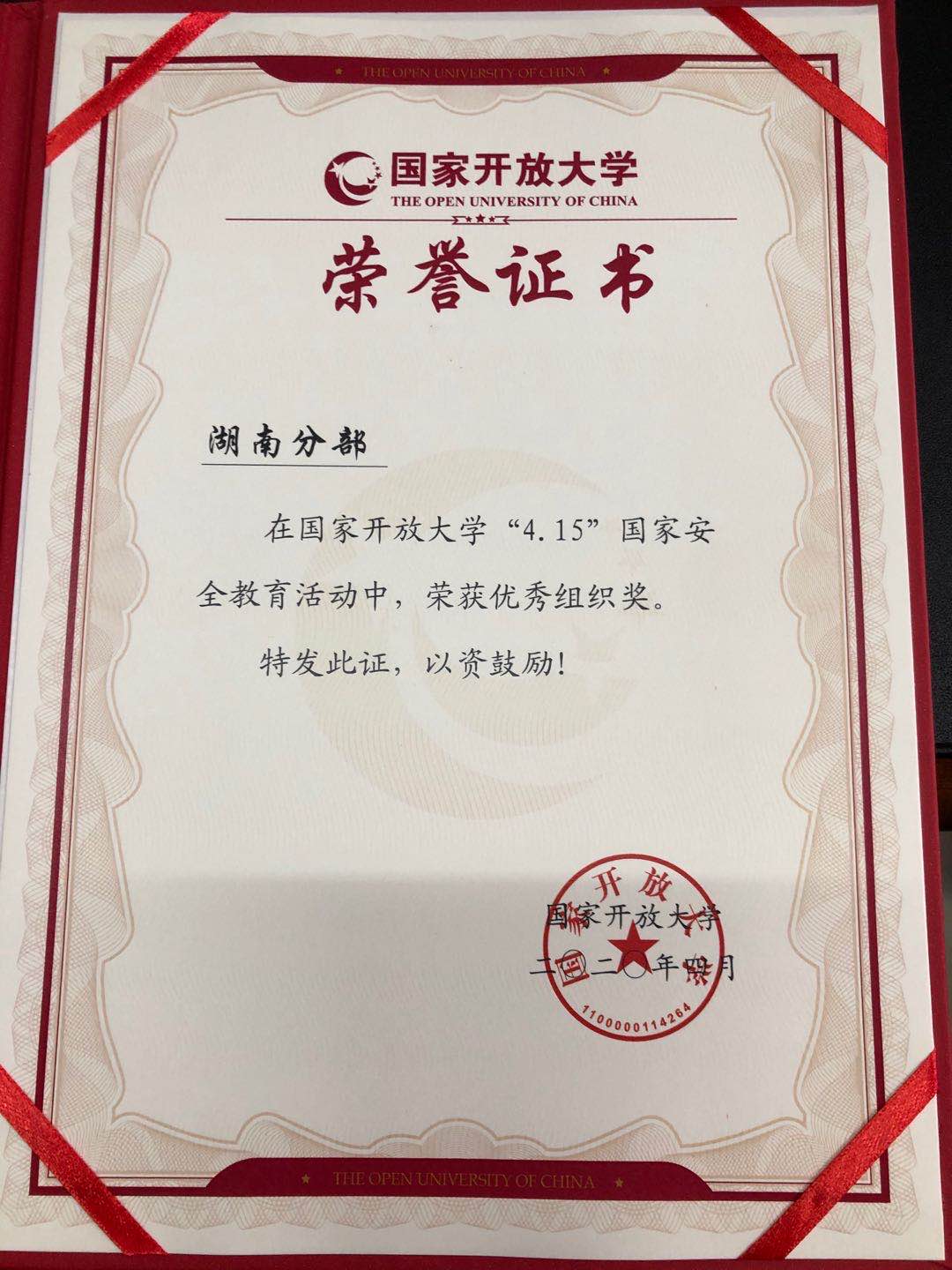 我校荣获国家开放大学“4.15”国家安全教育活动优秀组织奖