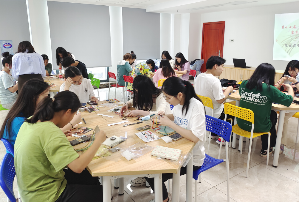 为传承和弘扬中华优秀传统文化,丰富同学们的课余生活,提升同学们的心理品质,5月31日下午,由学生工作部(处)主办、信息工程学院承办的第十七届“525”大学生心理健康日主题教育活动之“浓情我爱我,巧手赠香囊”在心理健康教育咨询中心团体辅导室顺利开展。本次活动共有200多人报名,最终选取不同专业、不同年级近60名同学参加。