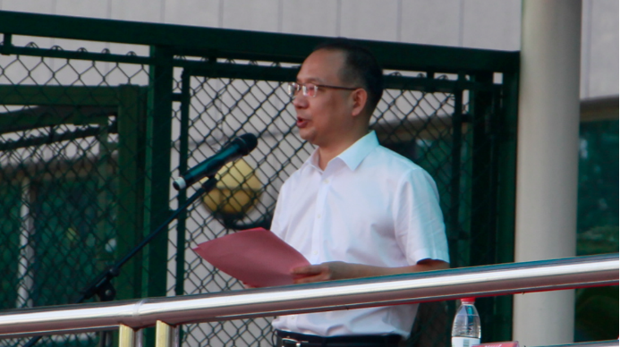 王宇委员宣读了军训纪律和要求并代表学校党委对2022级新生的到来表示欢迎和祝贺,向承训的各位教官表达感谢。他指出,军训是国防教育的重要内容,要充分认识到军训在人生道路的重要意义。他向参训新生提出三点要求:一是端正态度,统一认识,振奋精神;二是服从命令,严格要求,团结协作;三是全力投入,顽强拼搏。同时他希望同学们都能以饱满的精神状态投入到军训中去,圆满地完成各项训练任务,取得军事训练和思想作风建设的双丰收。