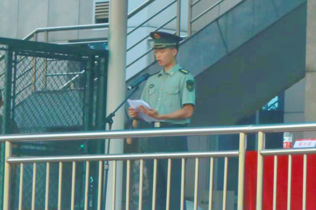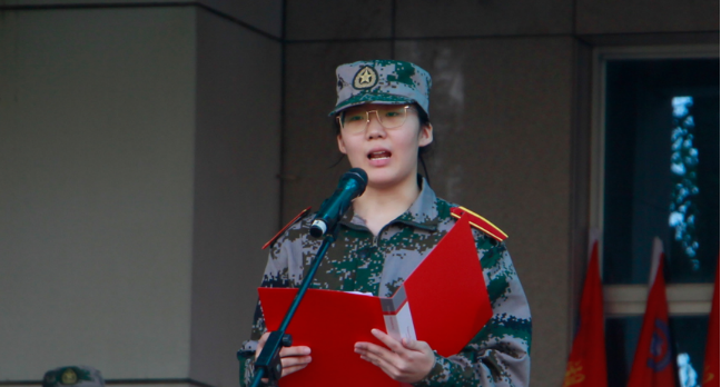 随后,学生代表、教官代表分别作了发言。2022级数字媒体技术专业新生郑宛宜代表全体参训新生承诺,一切行动听指挥,服从教官和辅导员的管理,培养自己吃苦耐劳的意志品质;严格遵守纪律,自觉接受考验,努力完成规定的训练内容。教官代表罗江伟表示,将以良好的军人形象带训,以过硬的军事素质引导参训学员,通过军训提高政治思想觉悟,增强集体主义精神和组织纪律观念,磨炼意志,增强国防观念。