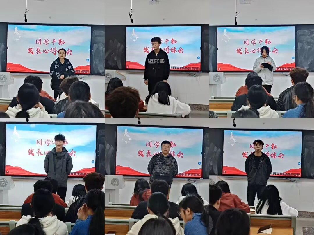 接着由同学们分享心得体会。同学们积极上台发表所学感想,纷纷表示要加强身上的责任感和使命感,真正发挥学生干部的模范带头作用,为学校的发展贡献青春、智慧和力量。